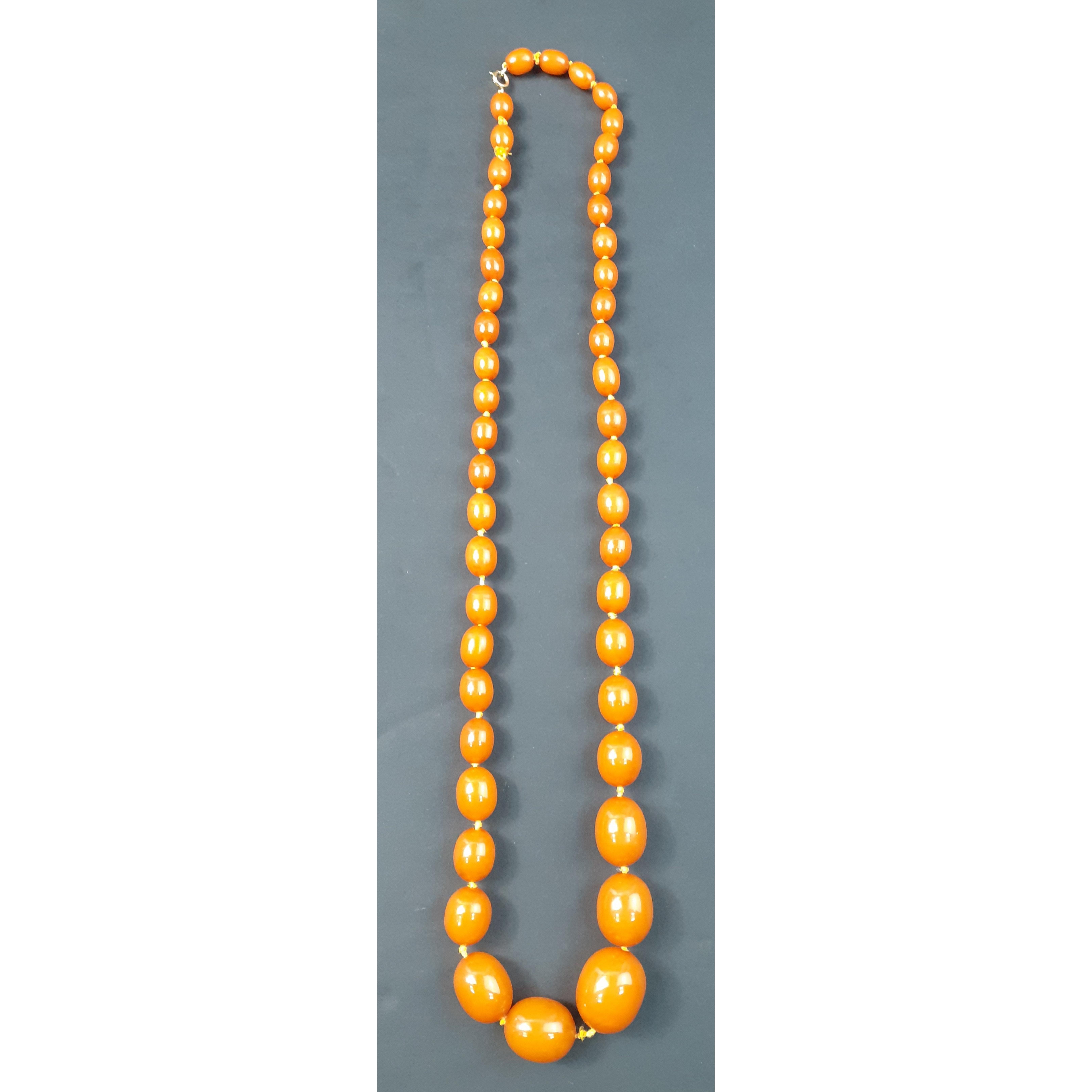 A string of graduated amber beads, largest approx 30mm, gross weight 73g approxApprox 1 pieces
