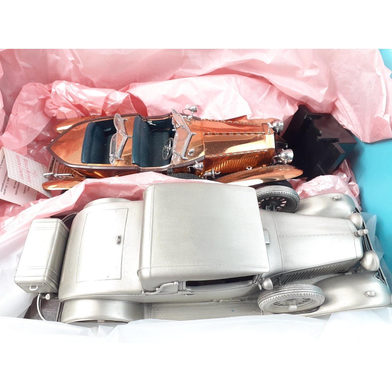 Two FRANKLIN MINT wonderful die-cast models one of the 1921 copper bodied Rolls Royce, and the pewter static Minerva 1929 EA CoupeApprox 2 pieces