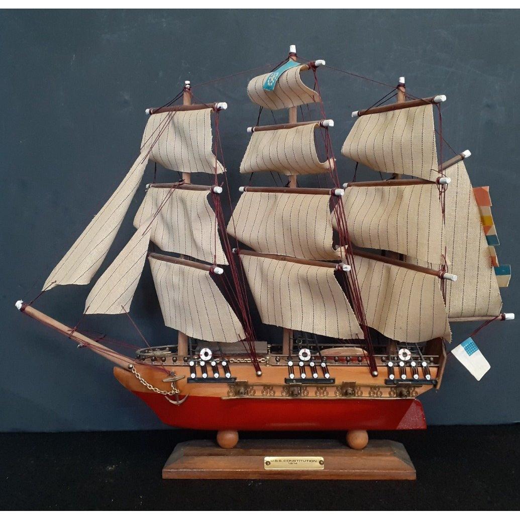 Three wonderfully detailed representations of sailing ships in wood to include USS Constitution, Spray and Fregata, Approx 3 pieces