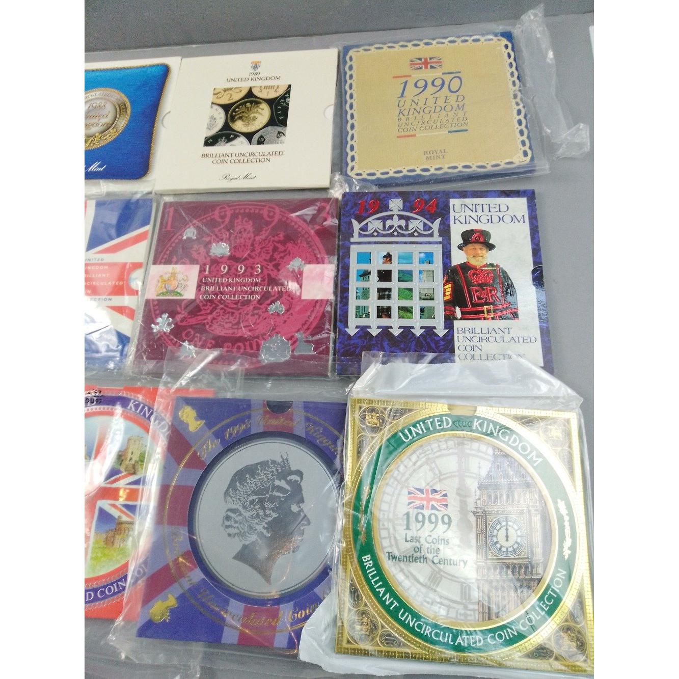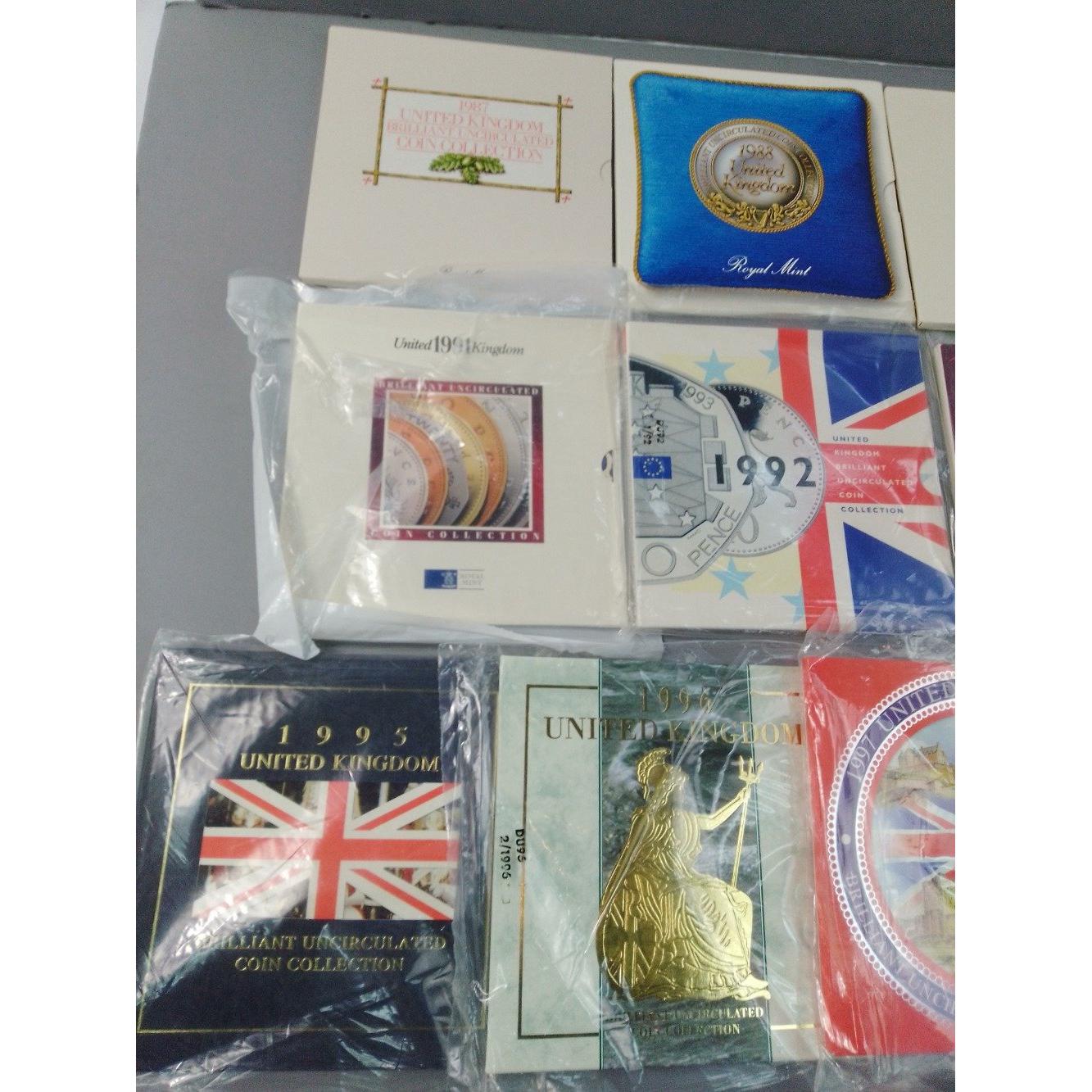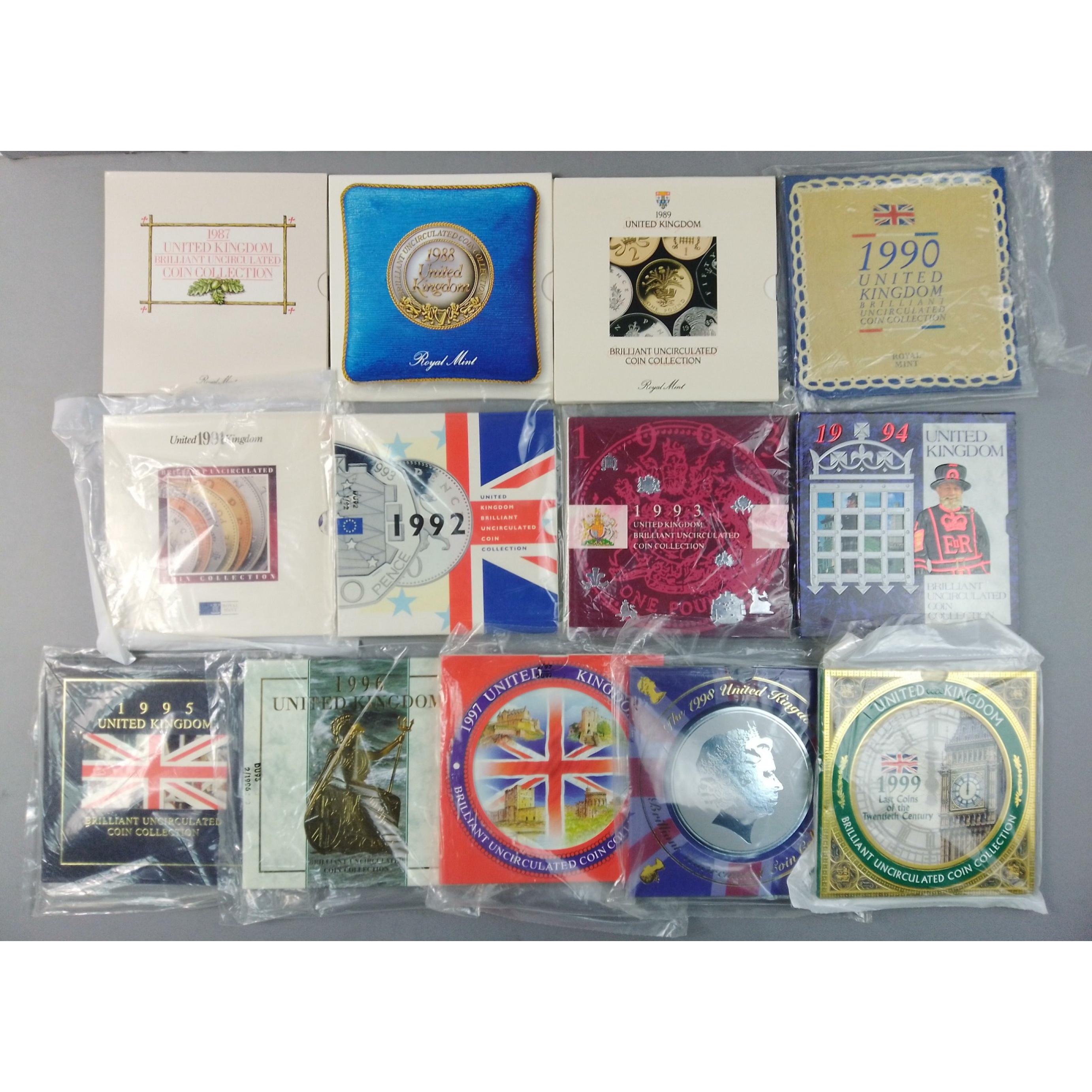 A superb run of ROYAL MINT uncirculated coin sets in original presentation packs between 1987 and 1999Approx 13 pieces