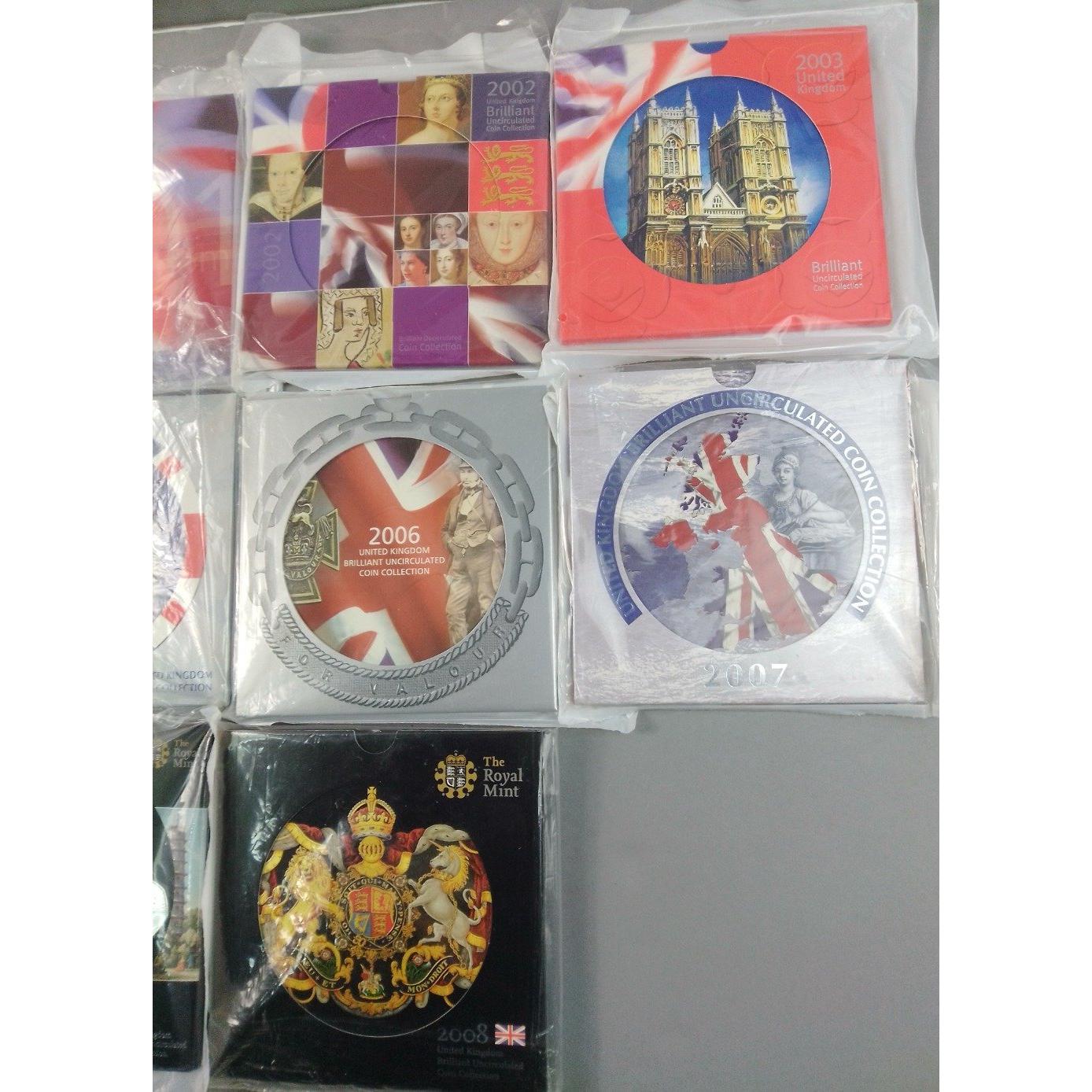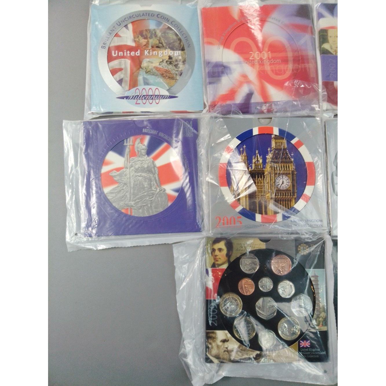 A superb run of ROYAL MINT uncirculated coin sets in original presentation packs between 2000 and 2009Approx 10 pieces