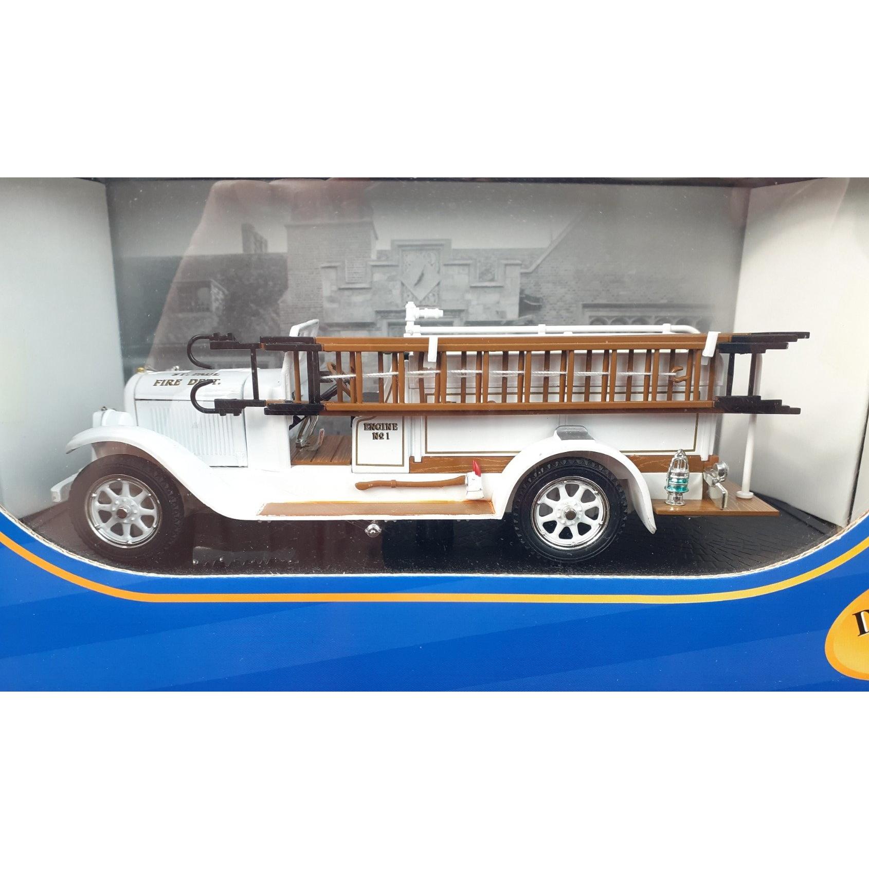 Three AMERICAN MINT premier edition FIRE TRUCKS in original packaging to include a 1960 Mack red version, a 1928 Rio all white and a 1928 Rio all redApprox 3 pieces