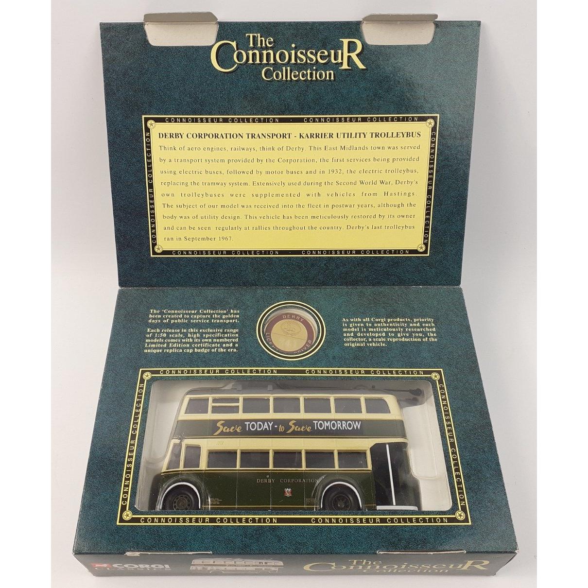 A collection of 5 CORGI Classics Connoisseur Collection buses to include 34703, Derby Corporation trolley bus, 35005 Routemaster, 35004 Routemaster, 35301 Yelloways Bedford, 35303 Selnec Bedford, all in good boxed condition