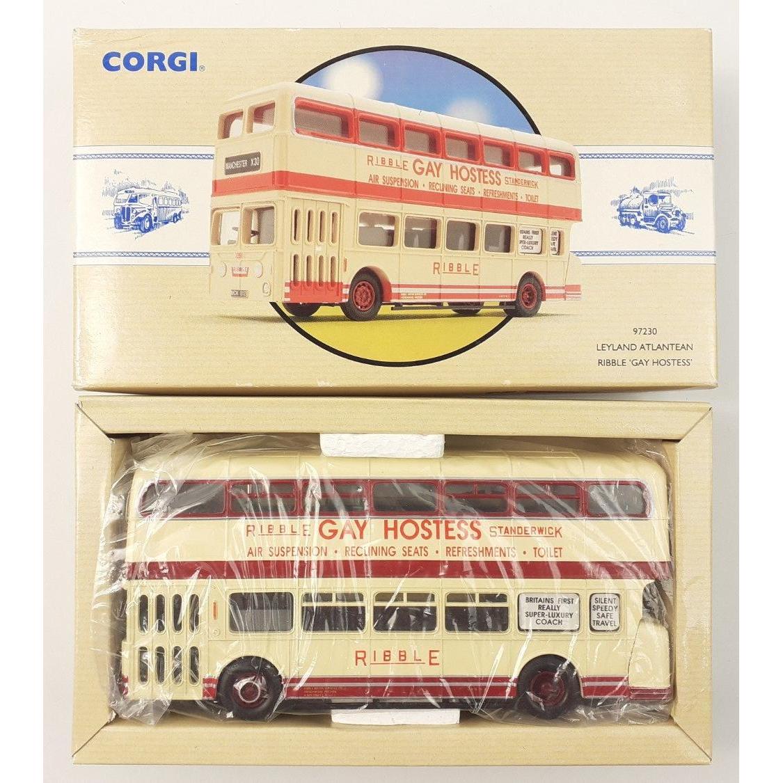 A collection of CORGI models to include 97915 the Bedford Pantechnicon, 97230 Gay Hostess, 97315 Guy Arab, 97357 AEC Pumper, 96993 ThornycroftApprox 5 pieces