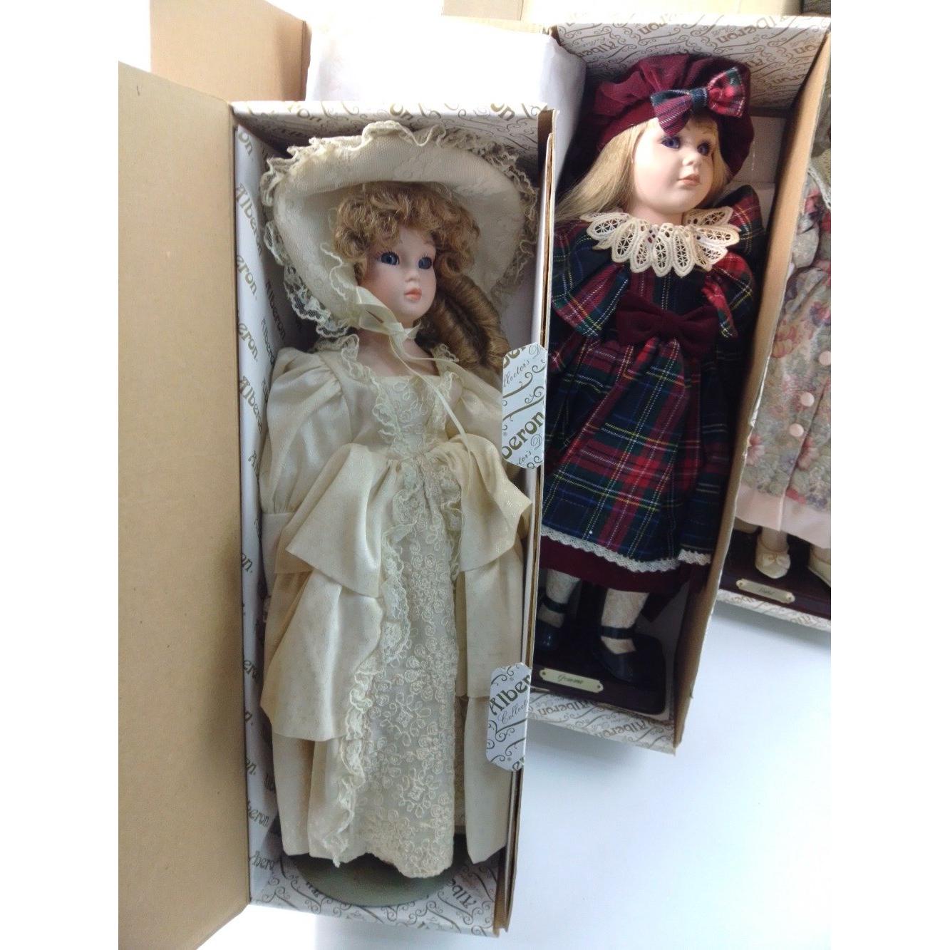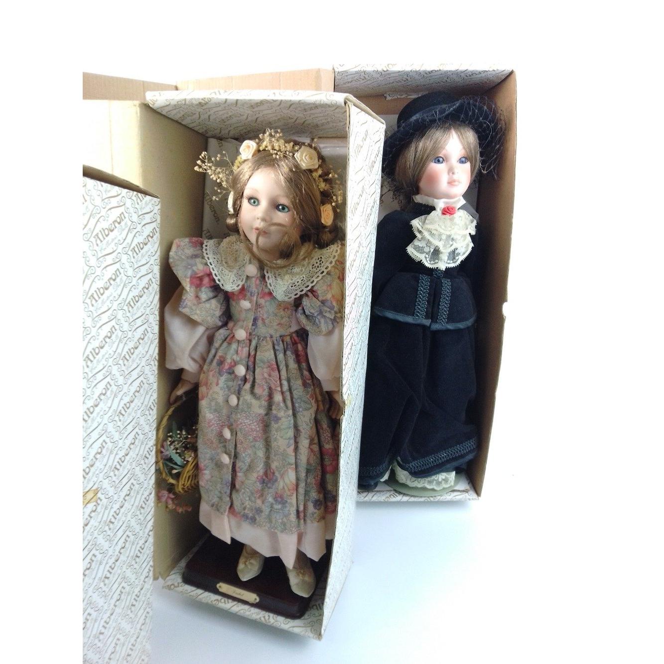 Four ALBERON COLLECTABLE DOLLS including Rachel (17") and 2 at 16" one called Gemma, on stands. Dolls in good condition. Boxes with wearApprox 4 pieces