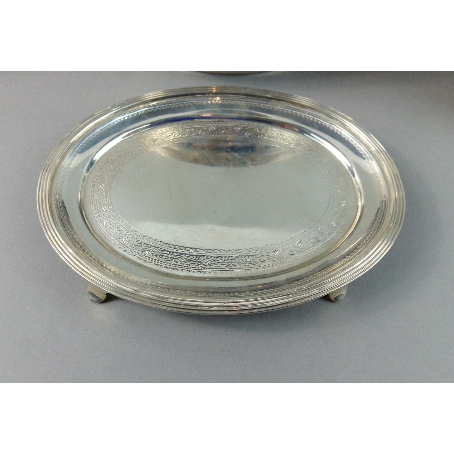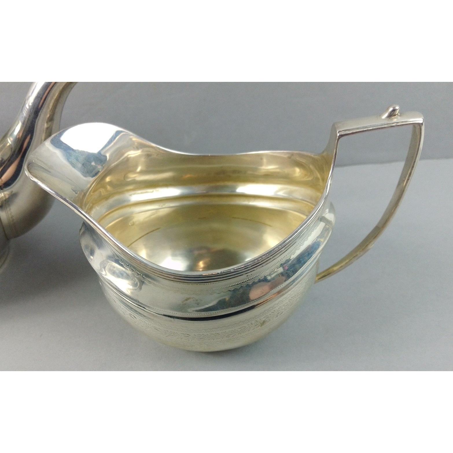 A four piece sterling silver tea service, hallmarked London 1904, maker's mark CS Harris and Sons teapot with wooden handle and finial in beautiful condition 515g approx, tray, sugar bowl and milk jug 498g approx