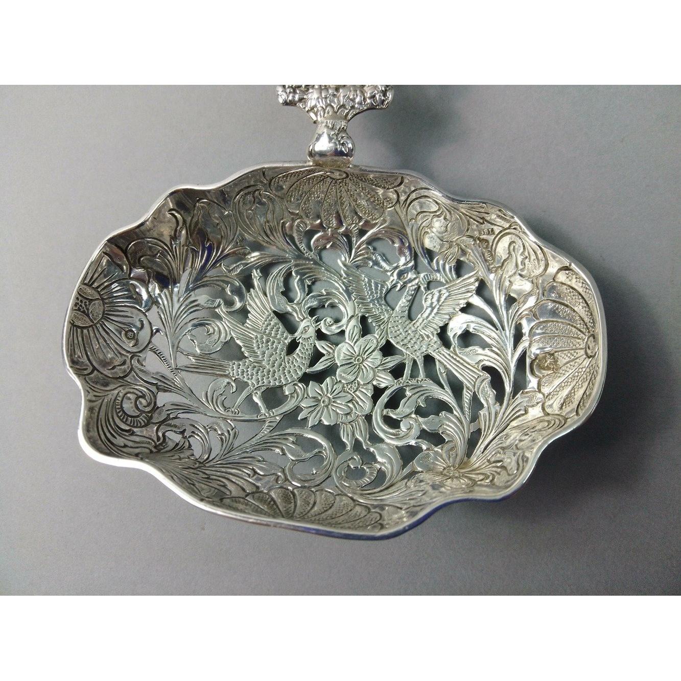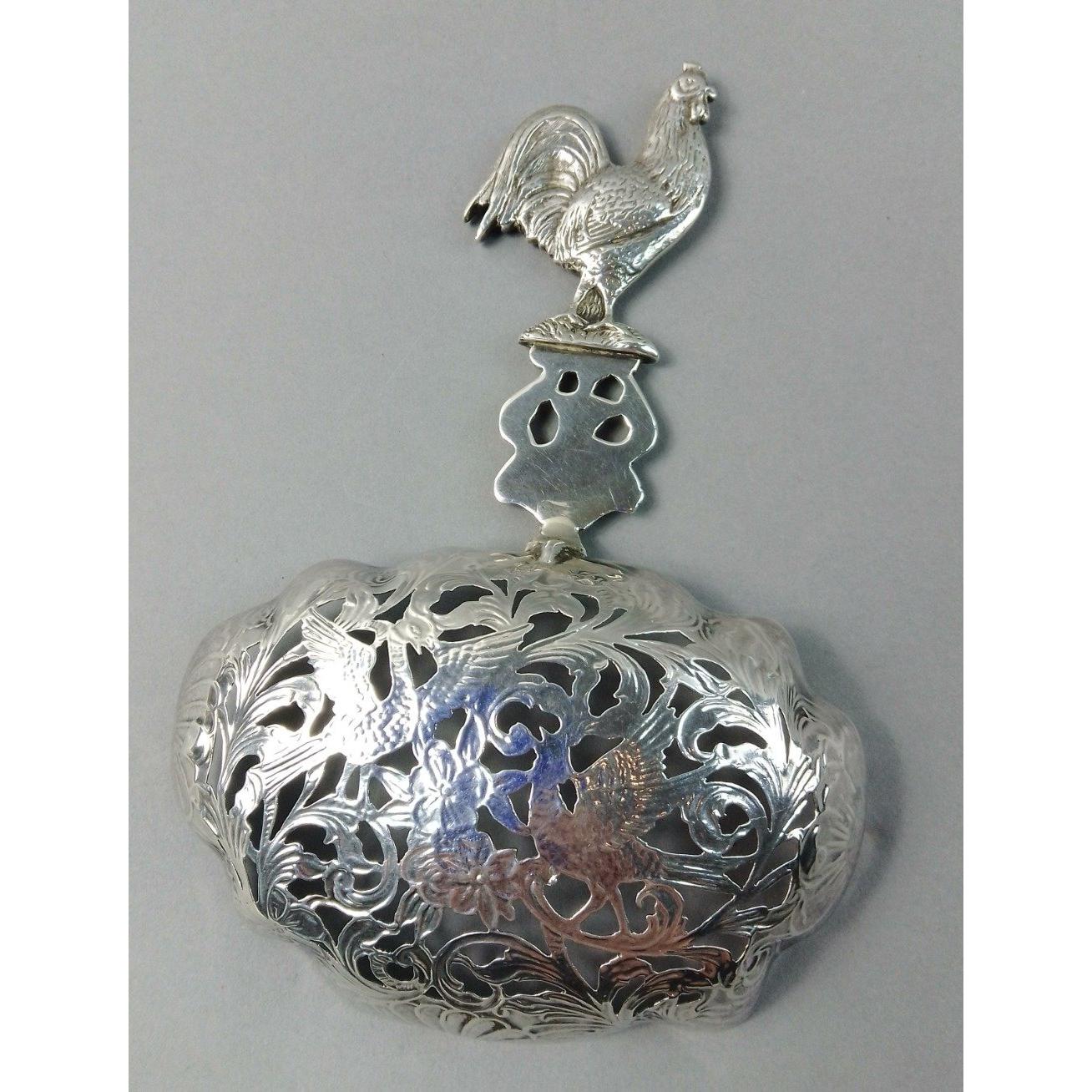 A lovely white metal European strainer with a beautiful punched design 14cm high, weight 71g approxApprox 1 pieces