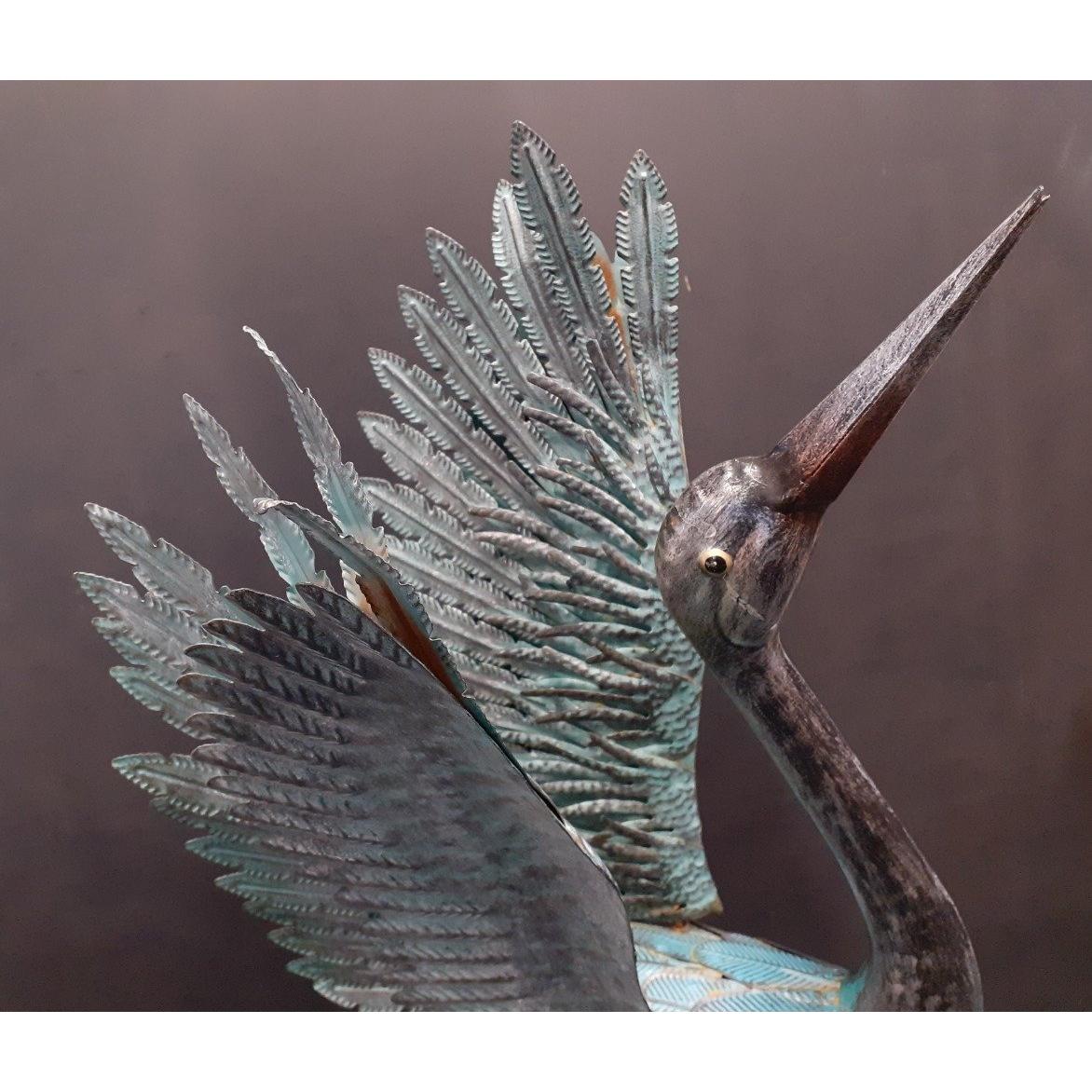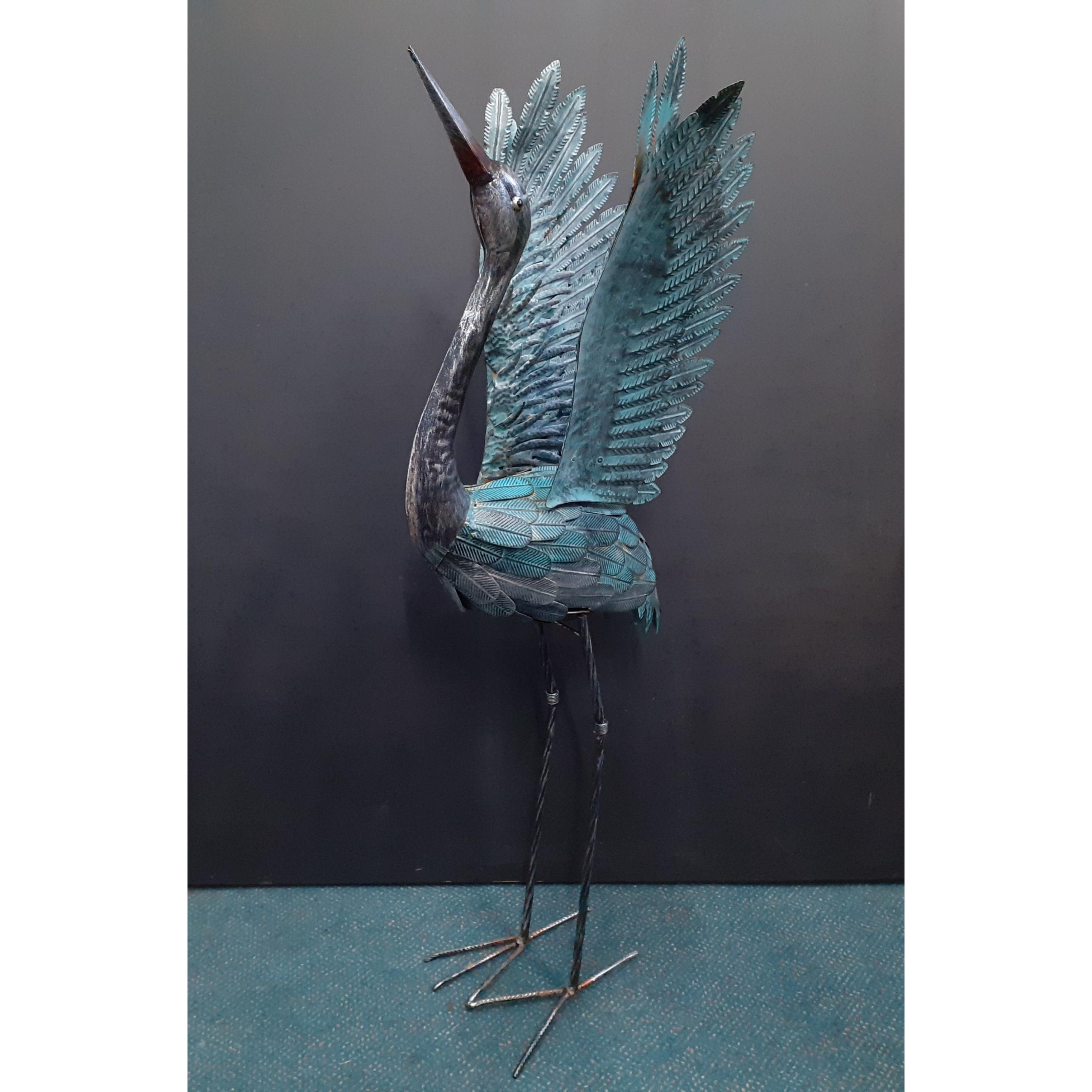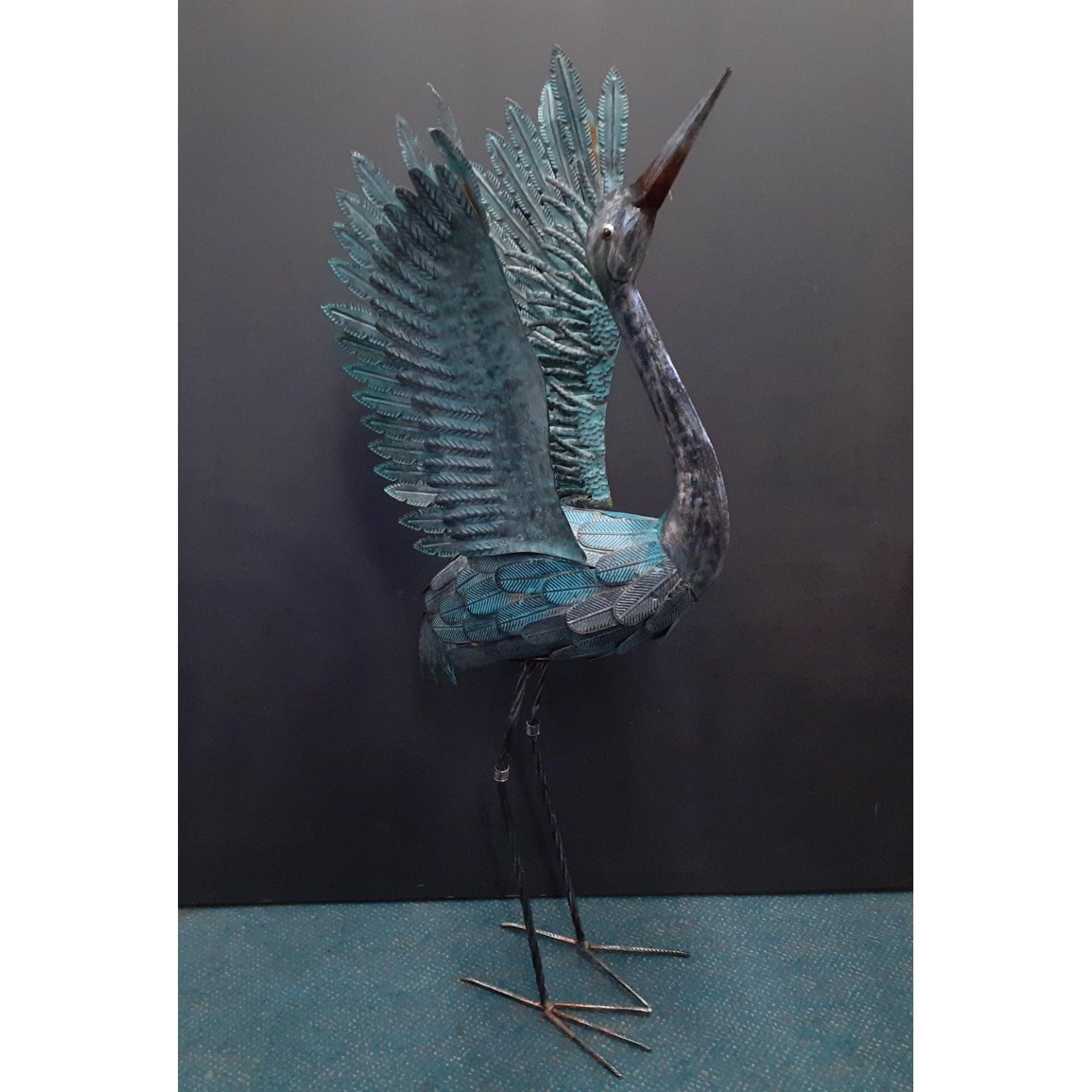 An impressive metal garden stork with a verdigris effect standing 100cm approxApprox 1 pieces