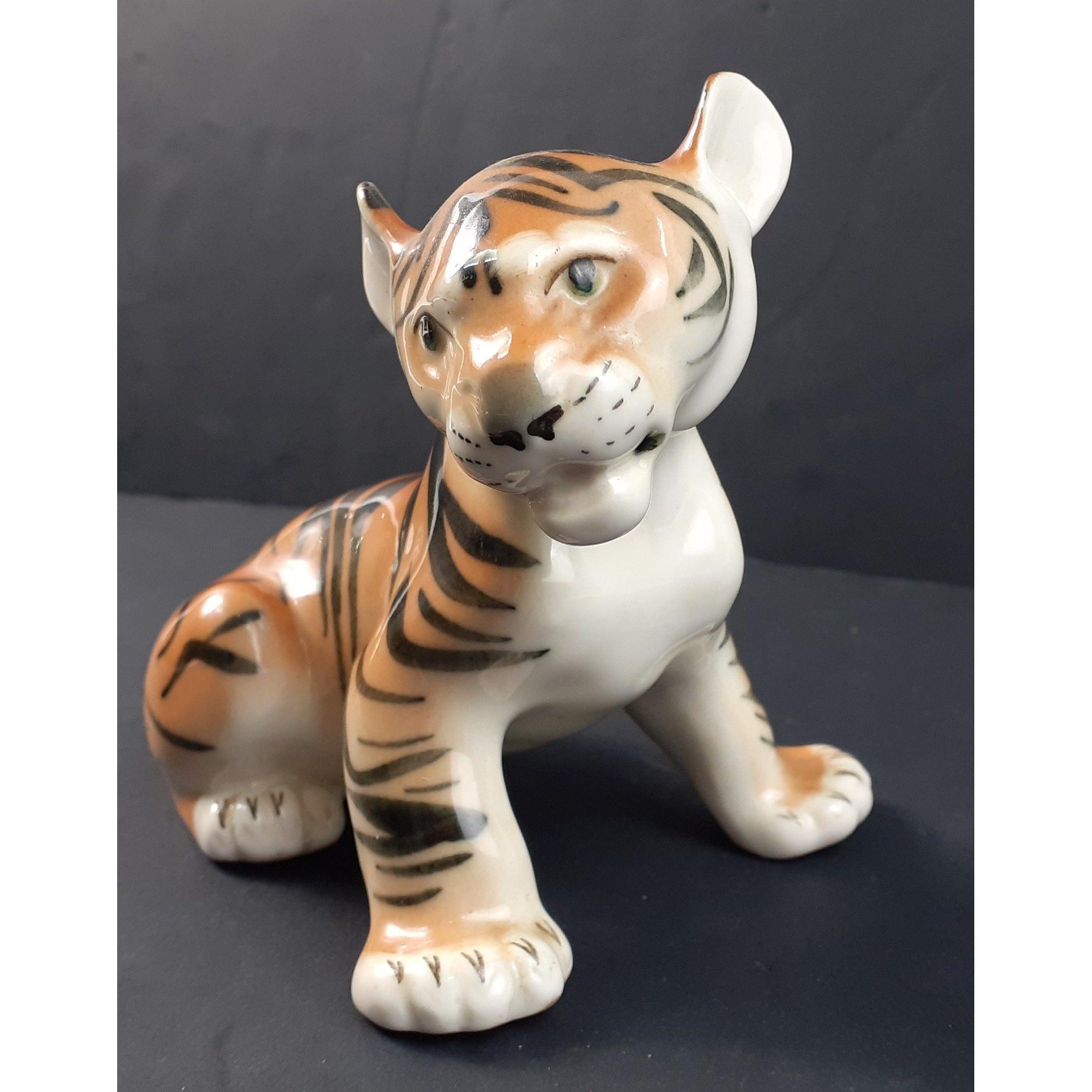 Back in the USSR - a lovely wee vintage Lomonosov tiger cub with red USSR stamp to the sole, W13cm x H13cm, no damage Approx 1 pieces