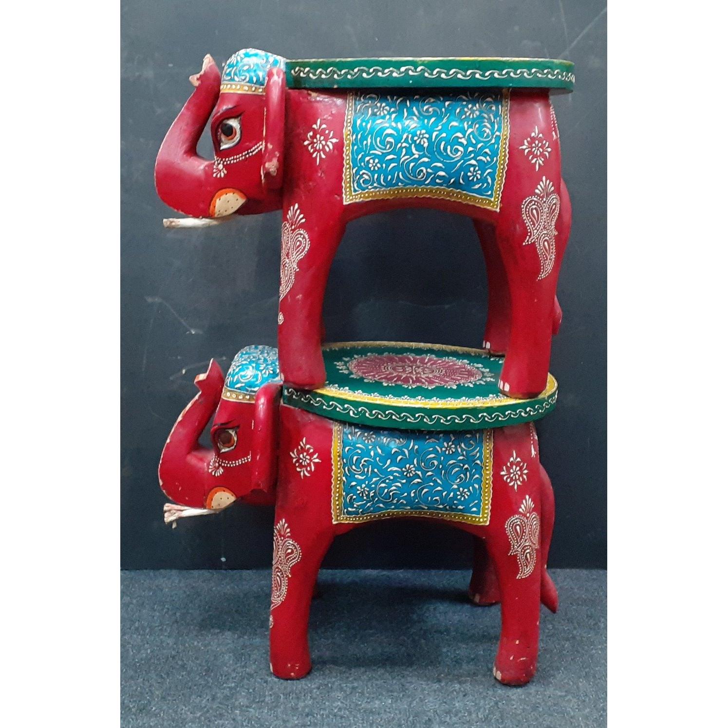 A fun pair of painted elephant stools each standing approx 36cm tall. Tusks have wear, one missing Approx 2 pieces
