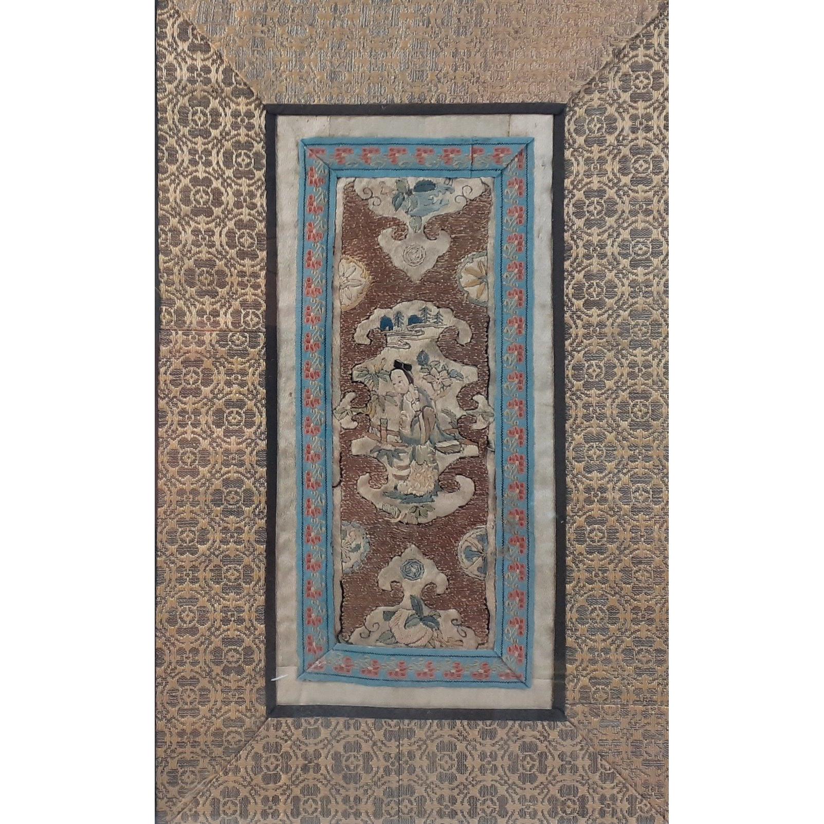 A framed and glazed antique Chinese silk panel of a woman, frame 44x33cm Approx 1 pieces