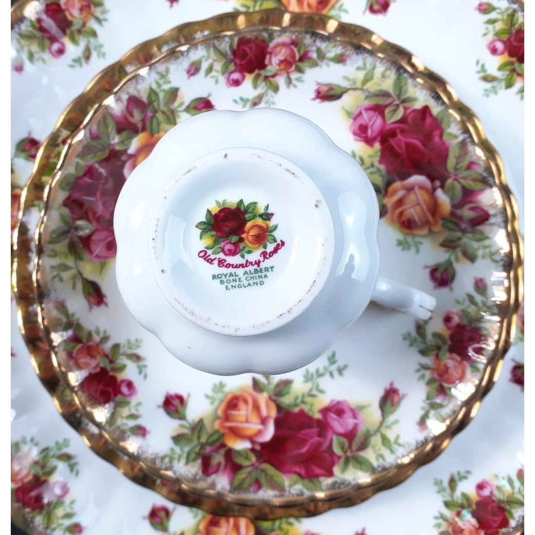 A ROYAL ALBERT Old Country Roses coffee service comprising a serving tray, 6 cups, 6 saucers, 6 side plates, 1 coffee pot (with residue), 1 sugar bowl and creamer, salt and pepperApprox 24 pieces