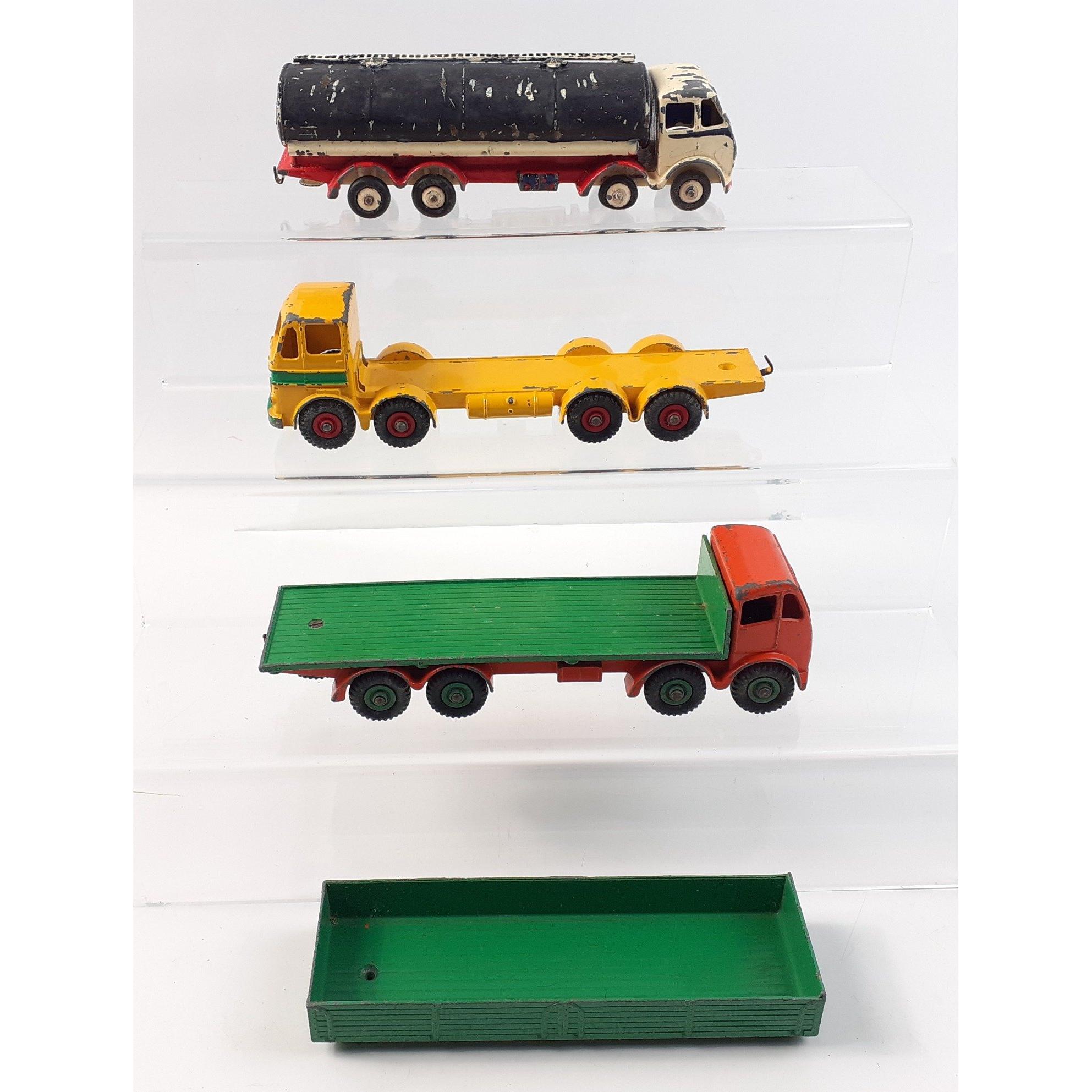 Three DINKY SUPERTOYS to include a Foden flatbed, Leyland Octopus, and a heavily over-painted tanker as foundApprox 3 pieces