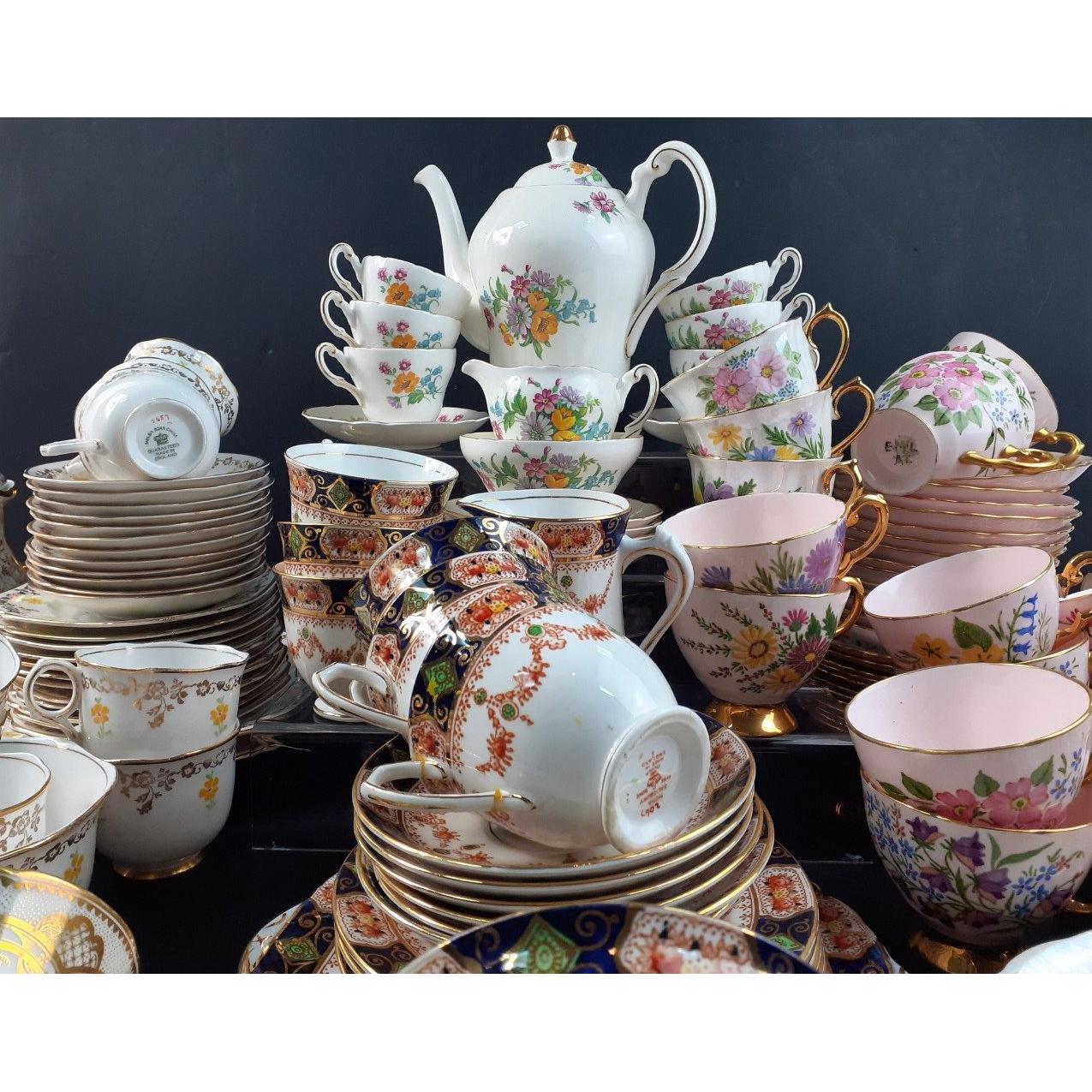 A large collection of useful, pretty decorative china, by Melba, Salisbury, Kent etc mainly cups and saucers with a few teapots