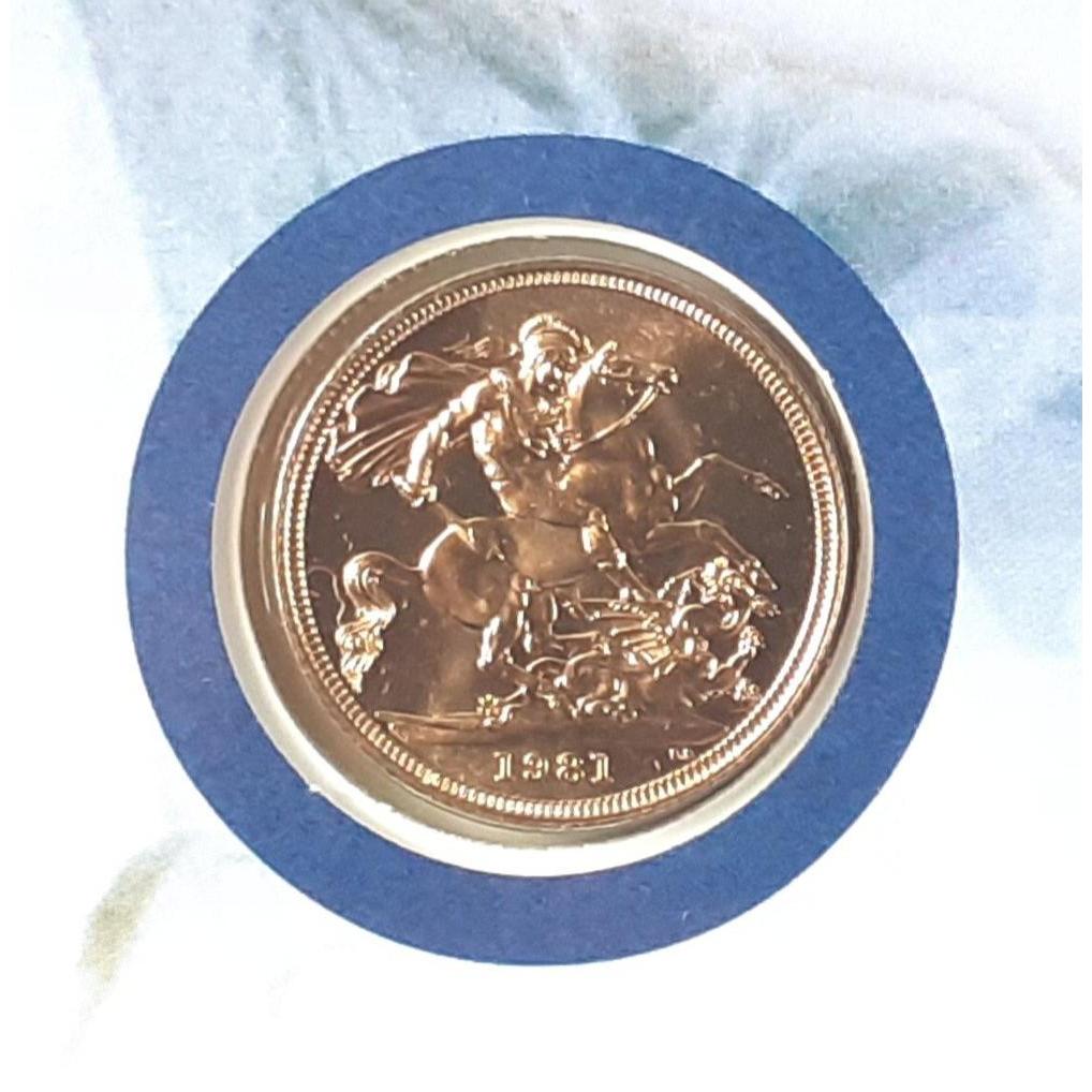 A full gold sovereign encapsulated on card, dated 1981 on a Princess of Wales commemorative royal stamp cover Approx 1 pieces