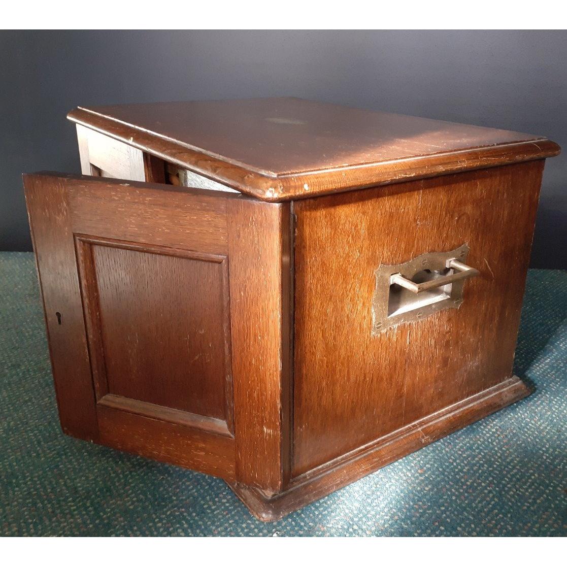 A superb large 4 drawer cutlery cabinet by THE ALEXANDER CLARK COMPANY LTD, Fenchurch St, London, with a substantial collection of quality plated cutlery. The case is magnificent although front lock is damaged. Engraved 'G' on the top matches the monogram on the handles of much of the cutlery