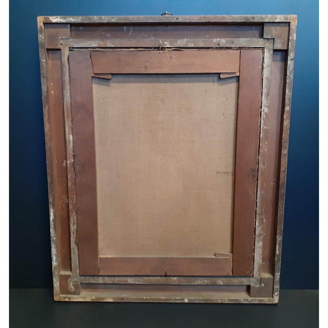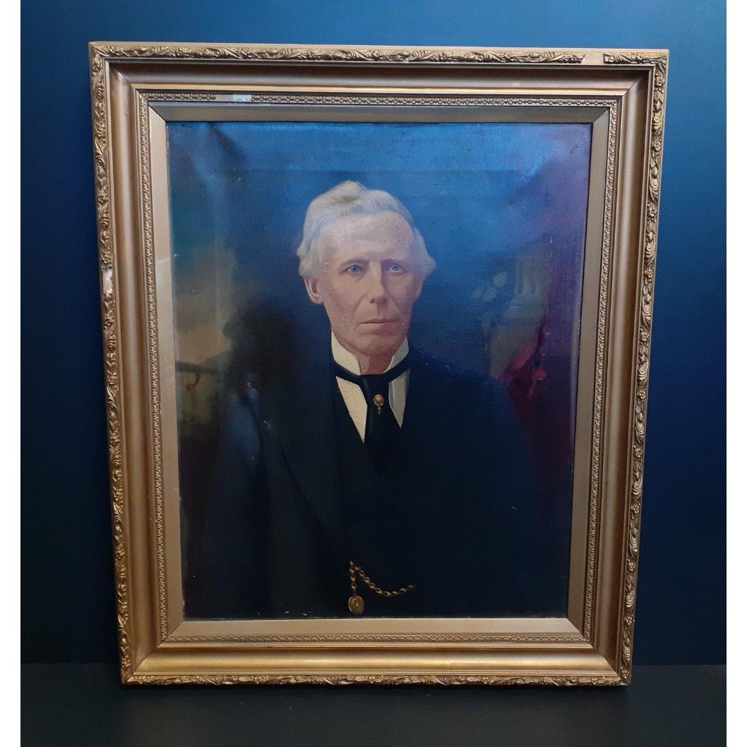 An antique gesso framed imposing oil on canvas portrait of a gentleman, frame size 80x67cm approx. And also one other similar (light damage to canvas). Both frames have wearApprox 2 pieces