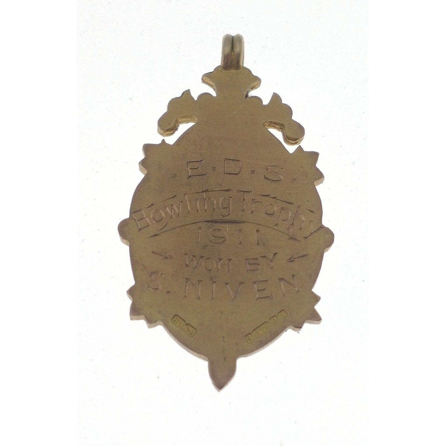 VINTAGE - 9ct gold bowling medal dated 1911. Weighs 9.45g approx.