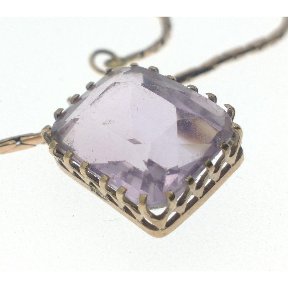 AMAZING AMETHYST! A 9ct stamped pendant with amethyst coloured centre stone presented on a 9ct chain. Chain 41cm fully hallmarked and weighs 7.4g approx. Pendant with stone has a gross weight of 5.65g approx