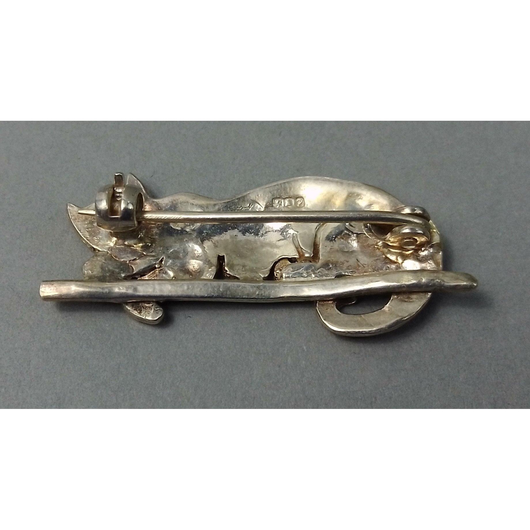 PRRRR! - A lovely wee silver reclining cat brooch, fully hallmarked (indistinct), weight 4.35g approx, 3cm long approxApprox 1 pieces