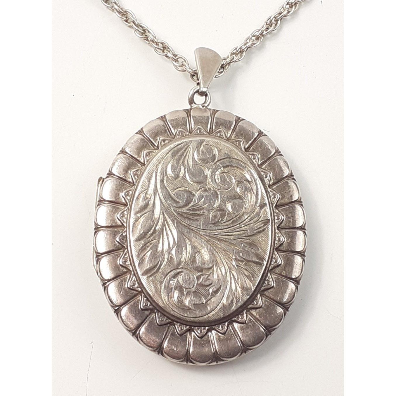 A lovely large silver locket, hallmarked Birmingham 1977, locket 4cm approx, weight 20.85g approxApprox 1 pieces