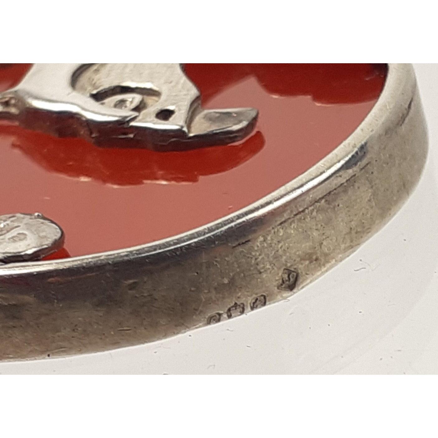 An EXTREMELY UNUSUAL pendant with indistinct marks set with a red centre stone and figural bird of prey, gross weight 15.5g approx, measures 3cm across approxApprox 1 pieces