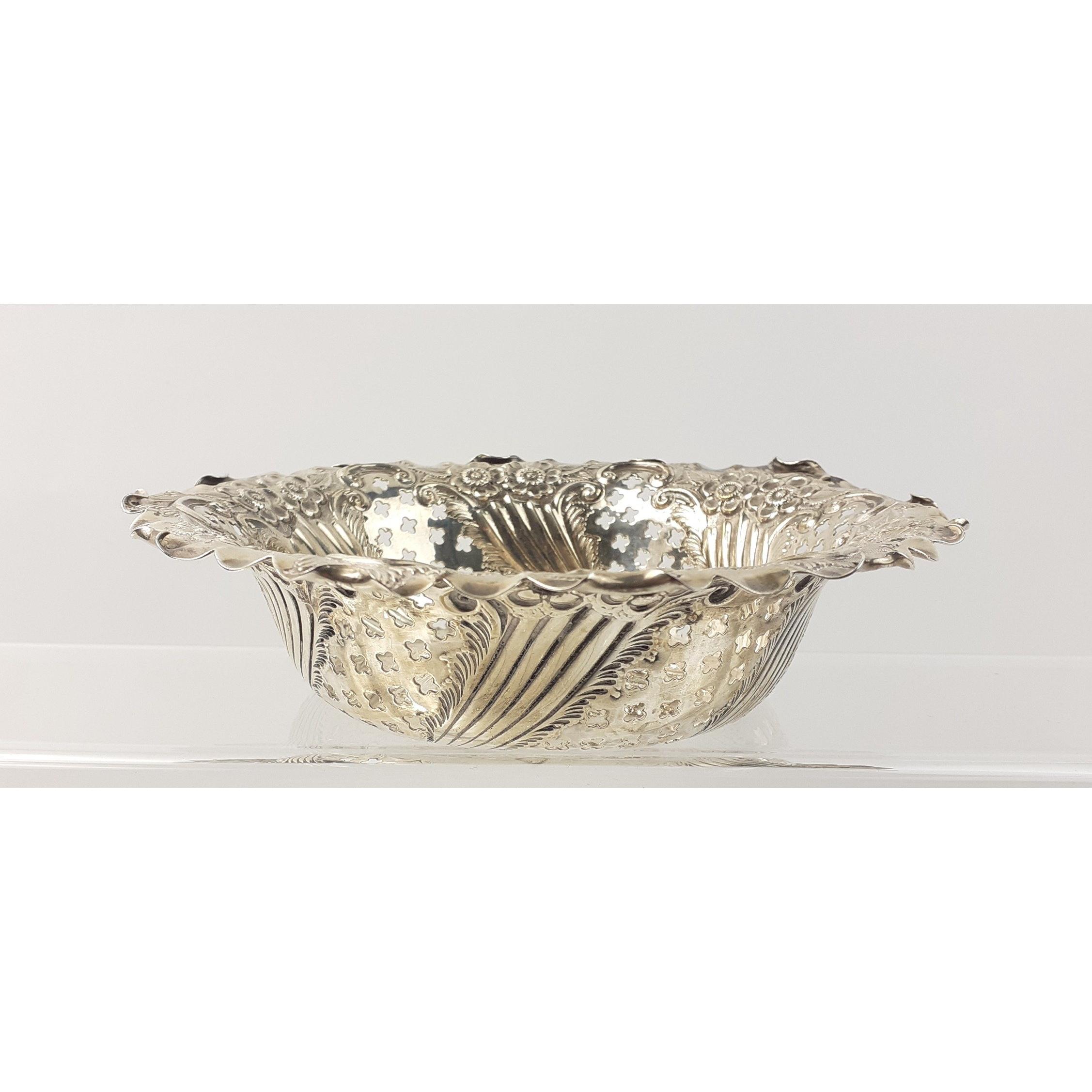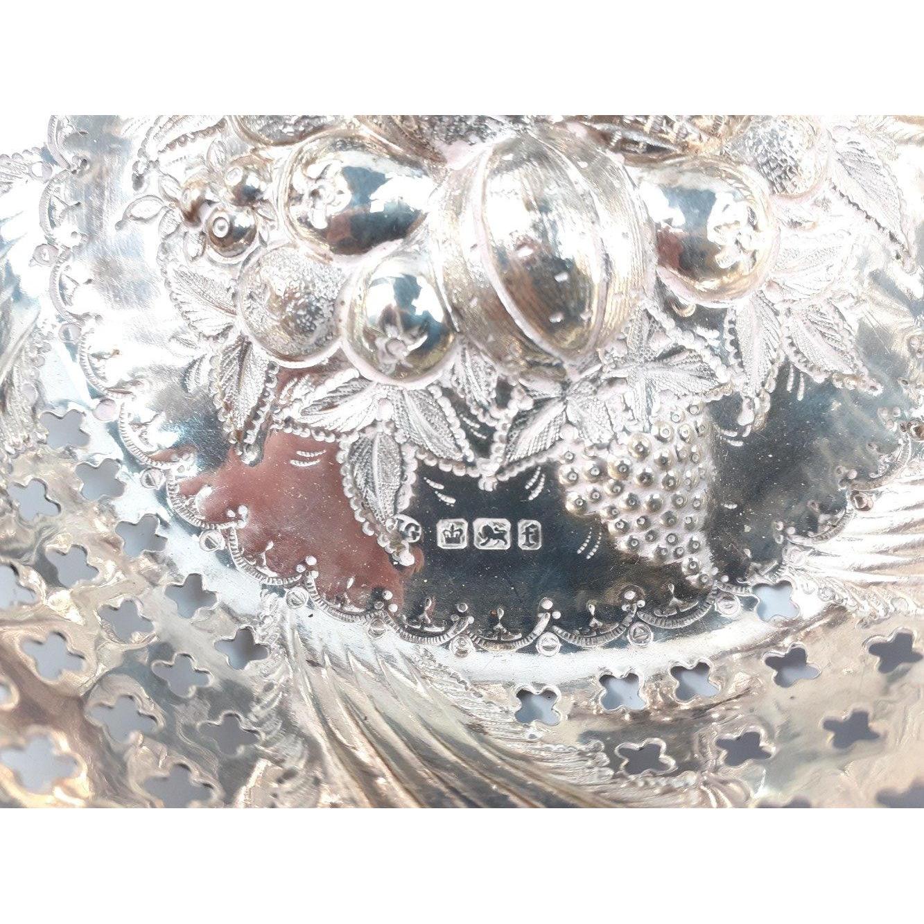 A stunning repousse fully hallmarked 17cm pierced basket in beautiful condition. Hallmarks for Sheffield 1923. Total weight 169.6g approx.