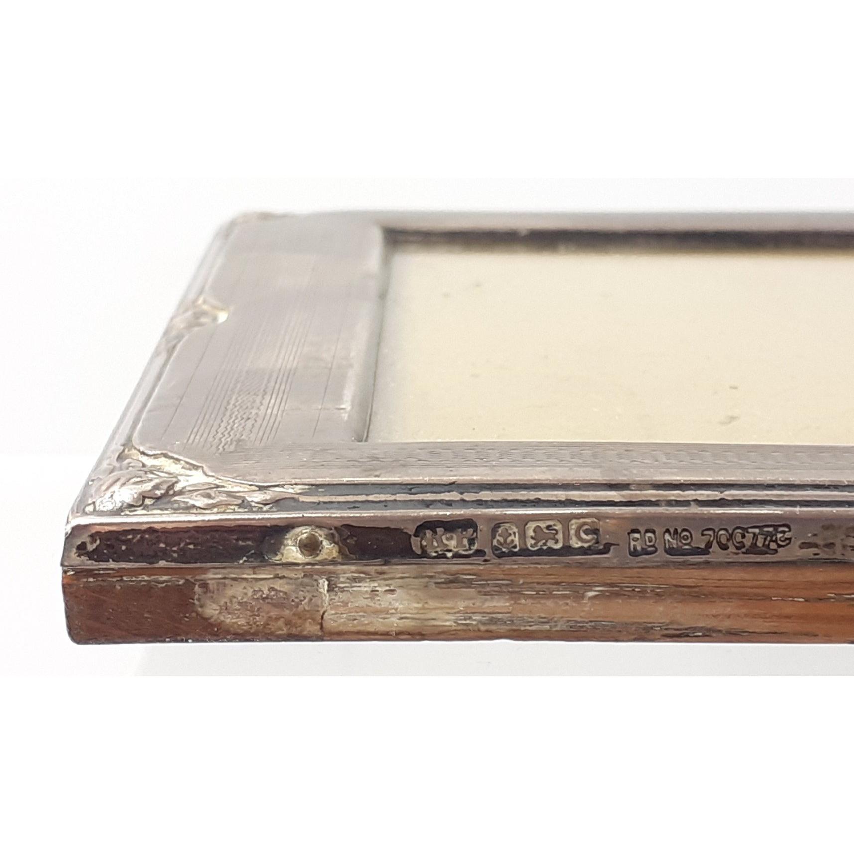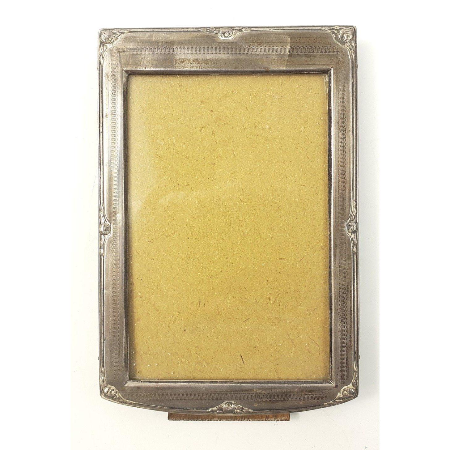 An antique solid silver framed photo frame in nice uncleaned condition. Measures 15cm x 10cm approx. Hallmarks for Birmingham 1927.