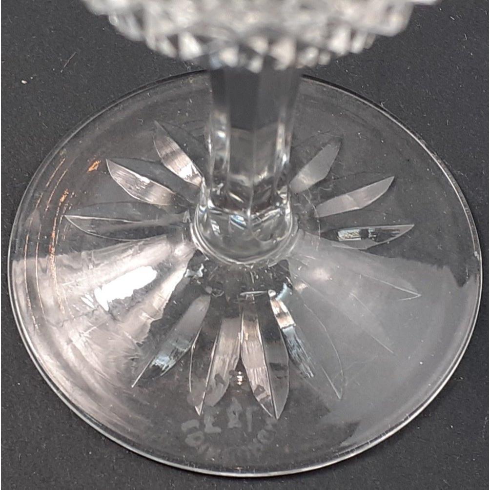 A small decanter (21cm high) in the Edinburgh crystal thistle pattern with 5 small liqueur glasses with Edinburgh crystal etched to the base of each glassApprox 6 pieces