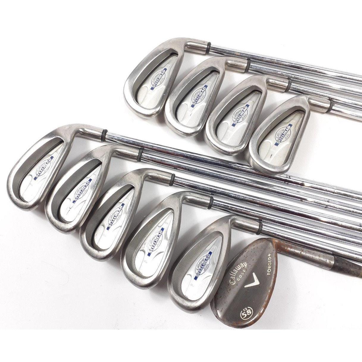 A set of nine vintage CALLOWAY steel-head Big Berthas plus a sand wedge golf club, in used condition.Approx 10 pieces