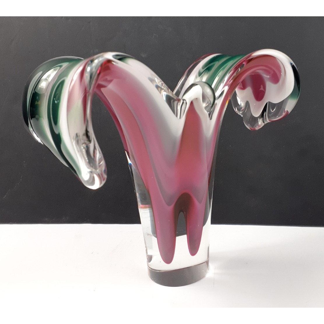 A rather lovely Scandinavian tri-colour glass vase, indistinctly signed to base in the style of coquile standing 19cm high approx and also a beautiful dump style paperweight with an etched floral design standing 9cm approx