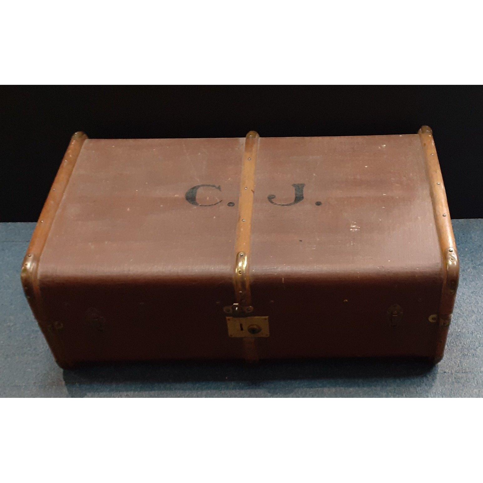 A large wooden banded steamer trunk 85x54x31cm approx, in good conditionApprox 1 pieces
