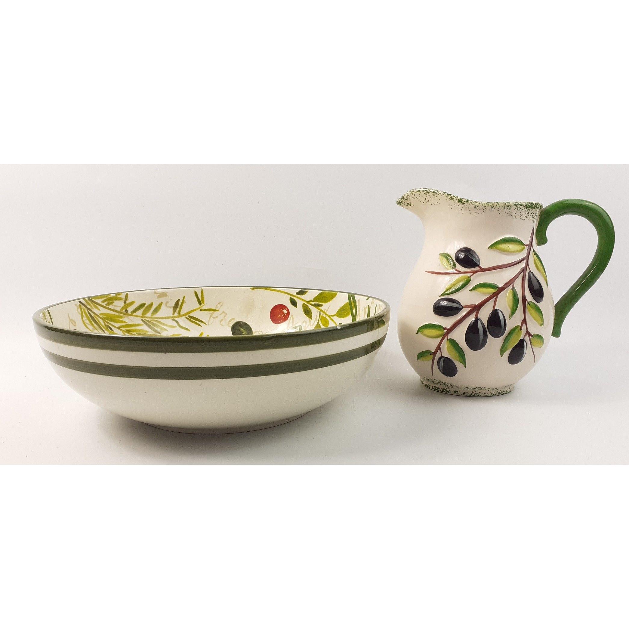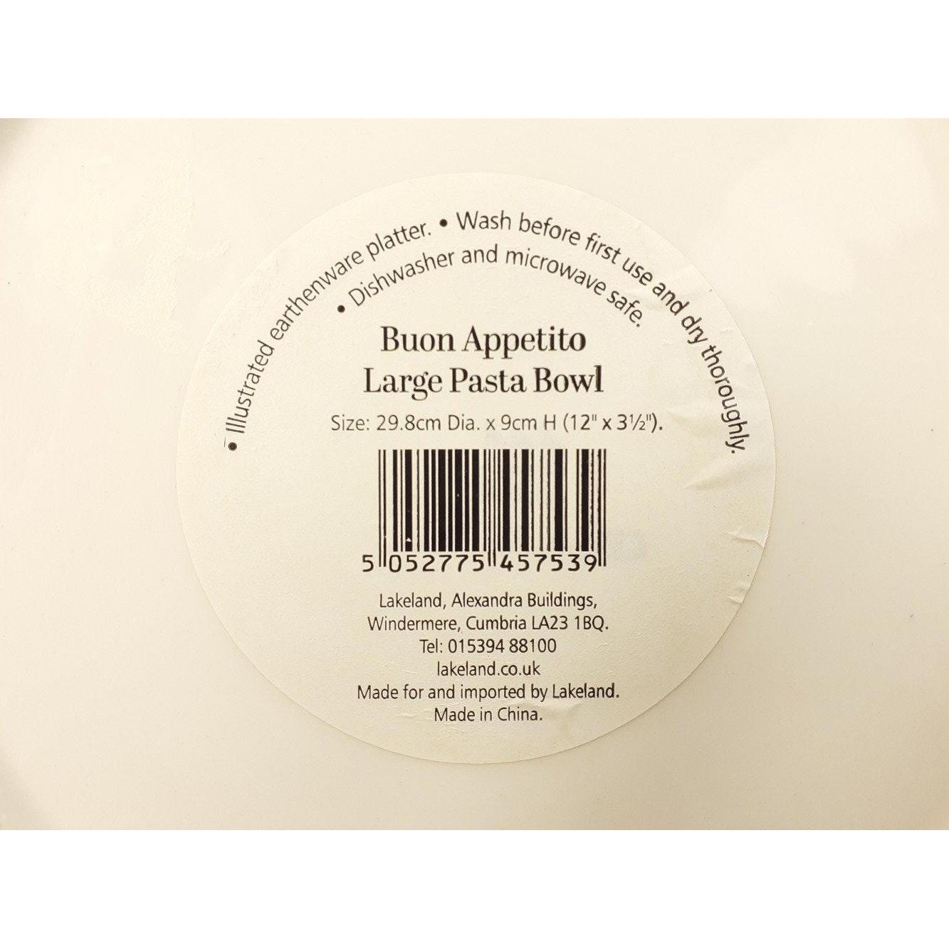 A large Buon Appetito pasta bowl from LAKELAND approx 30cm dia. with an unrelated but pretty similar style jug.Approx 2 pieces