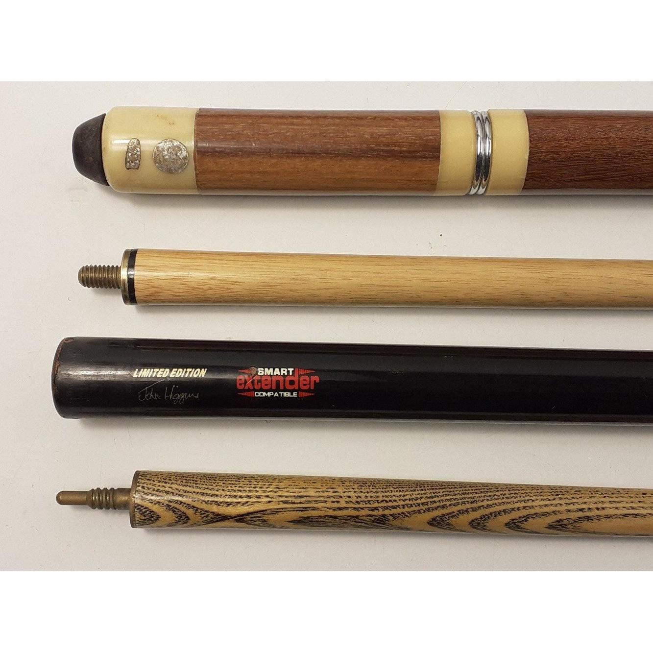 Two vintage snooker cues in cases, one a Riley John Higgins. Both in good order without tips. Approx 2 pieces