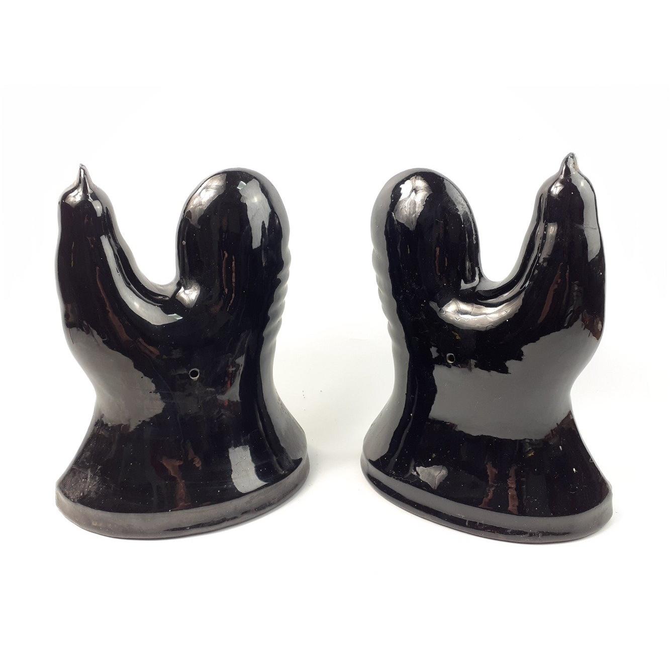 EARY VICTORIAN - An impressive pair of black cockerels with gold highlights each standing 30cm tallApprox 2 pieces