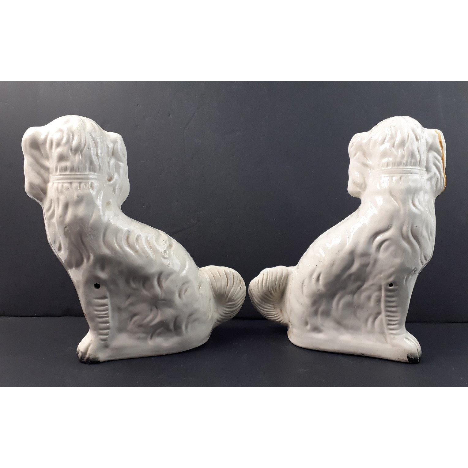 A magnificent pair of King Charles flatback Staffordshire dogs with painted eyes, 36cm tallApprox 2 pieces