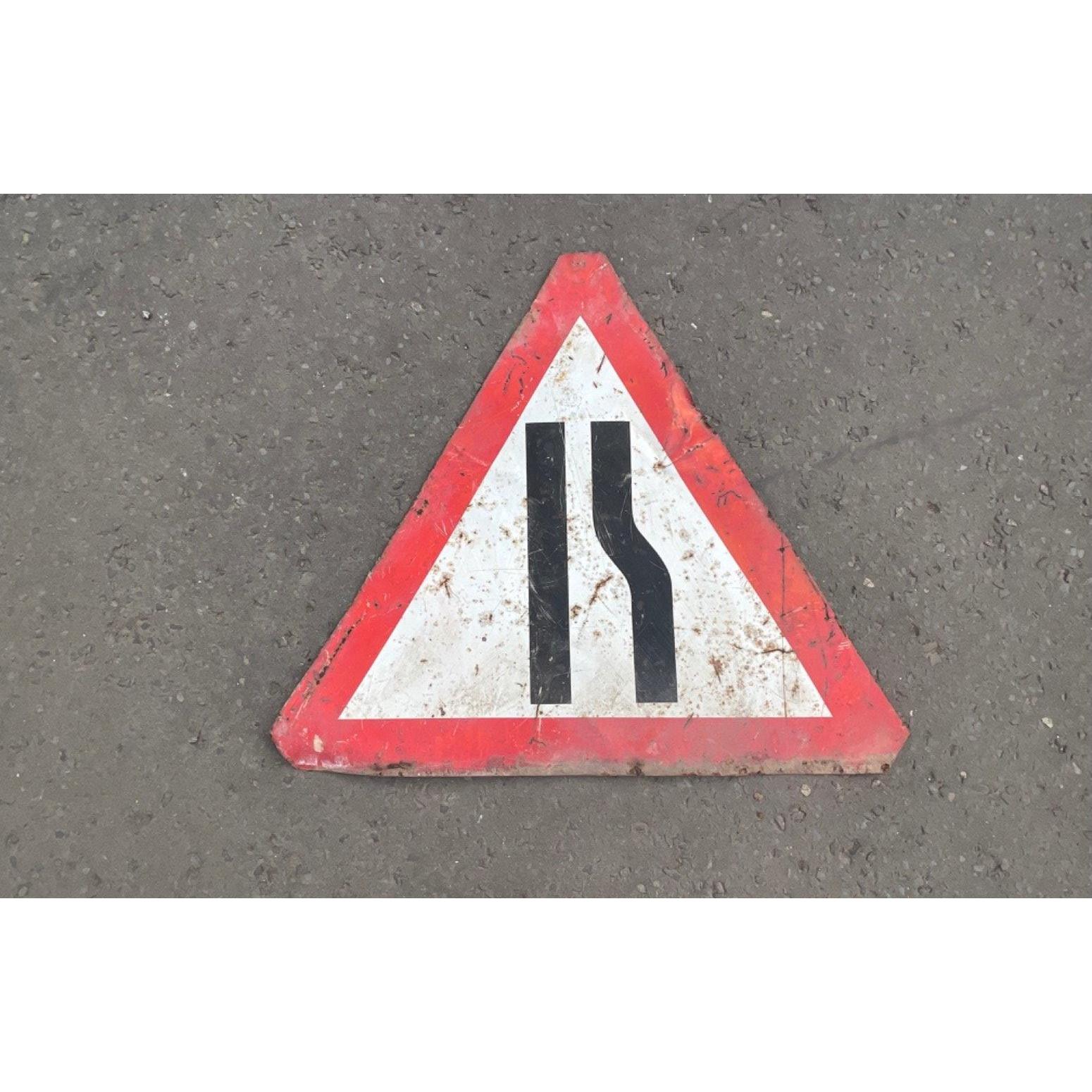 Three triangular road narrows metal road signs 2ft diameter approx Approx 3 pieces