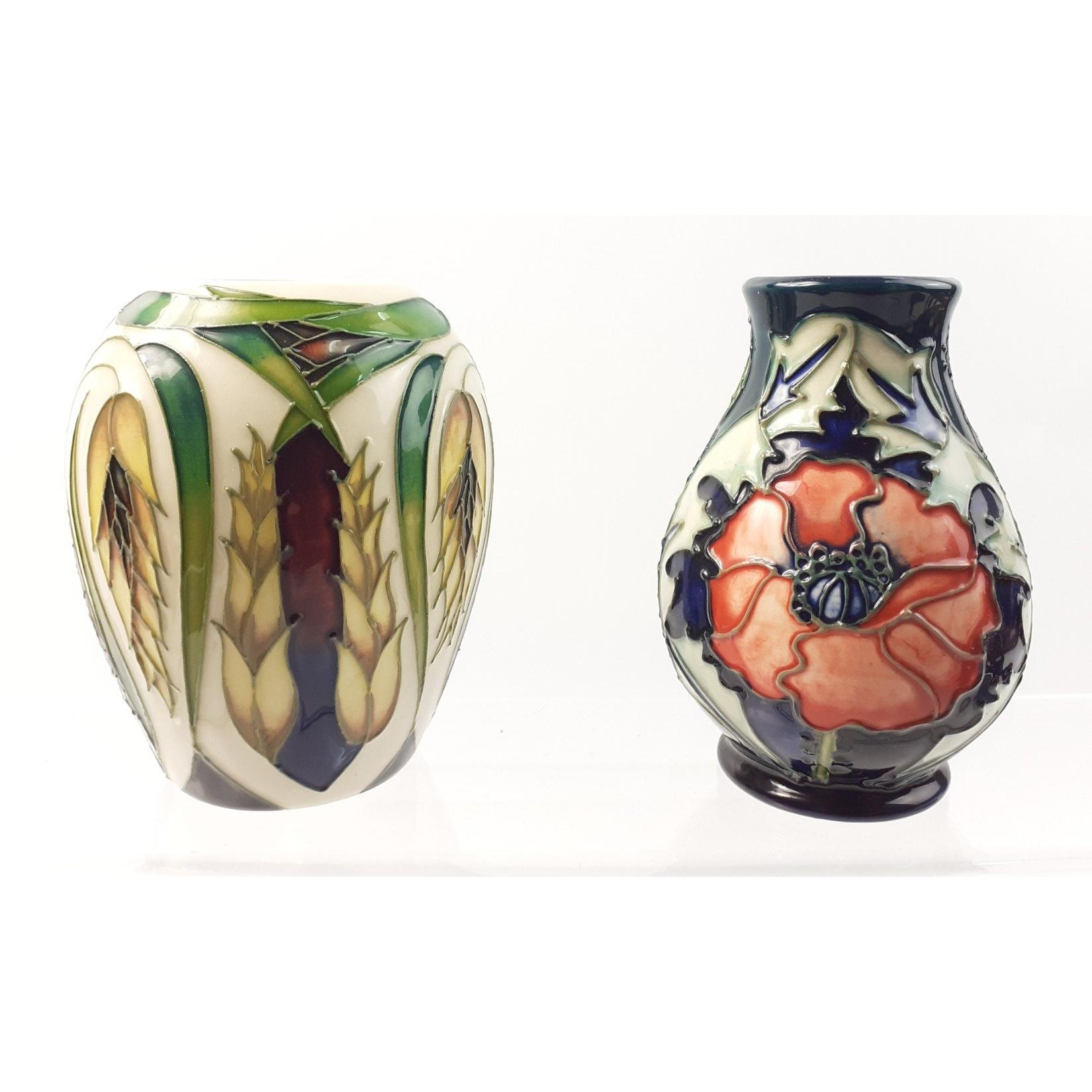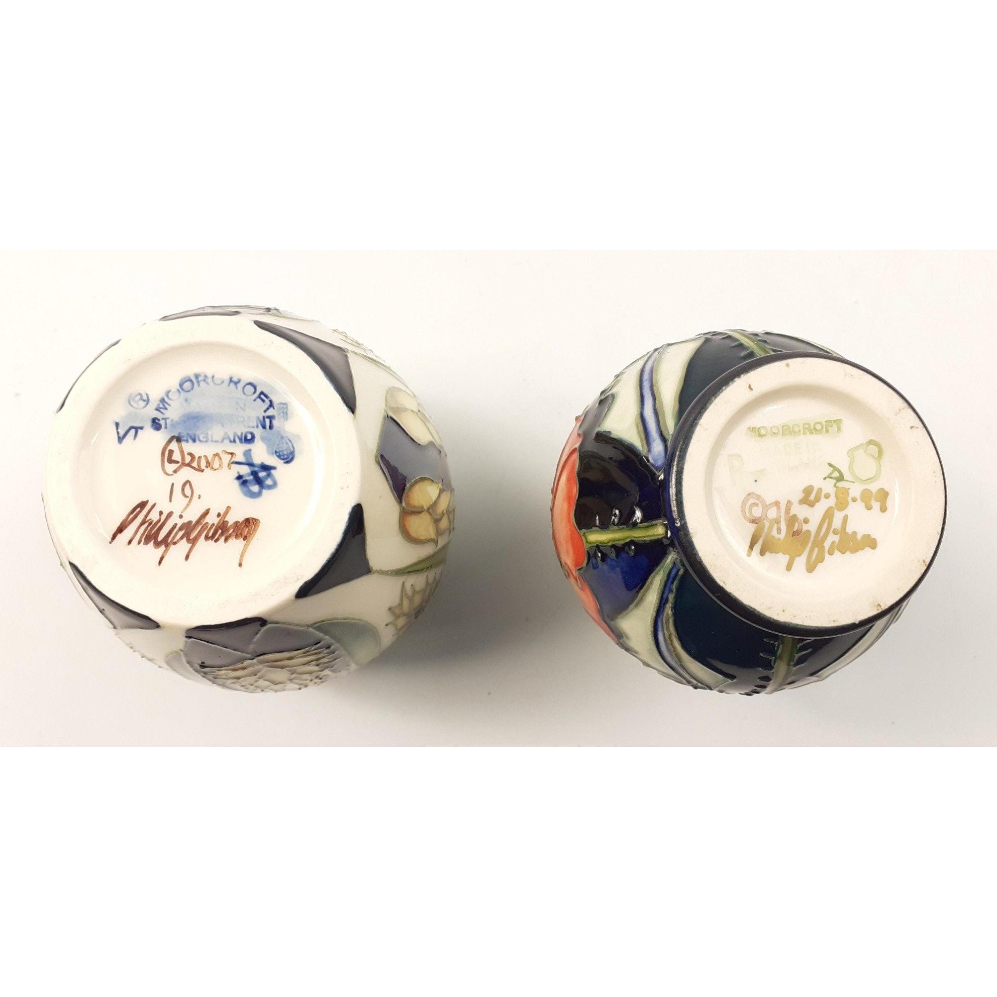 Two lovely MOORCROFT small vases in boxes each approx 9cm. In very good conditionApprox 2 pieces