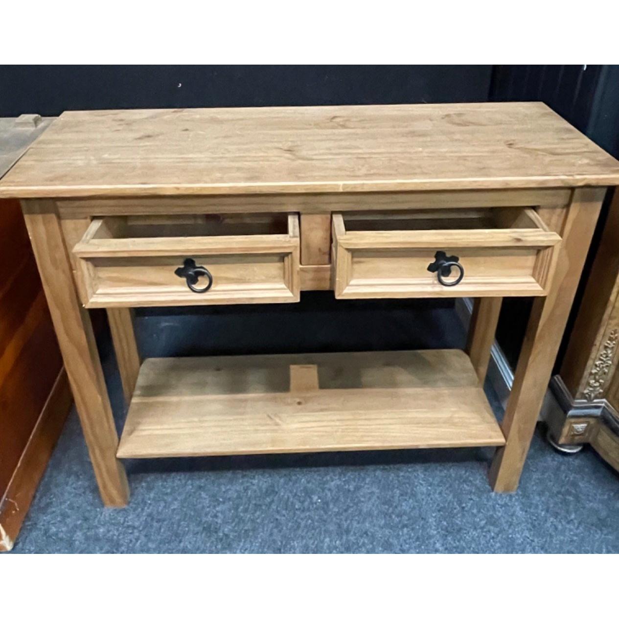 A light wood two drawer console table - 90cm length x 35cm depth x 73cm height
