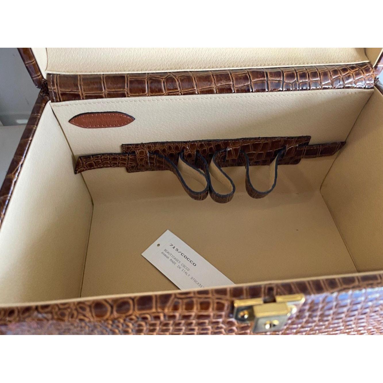 A QUALITY CROCODILE effect and smart looking vanity case - 14" across x 10" height x 10" depth approx - as new and never used