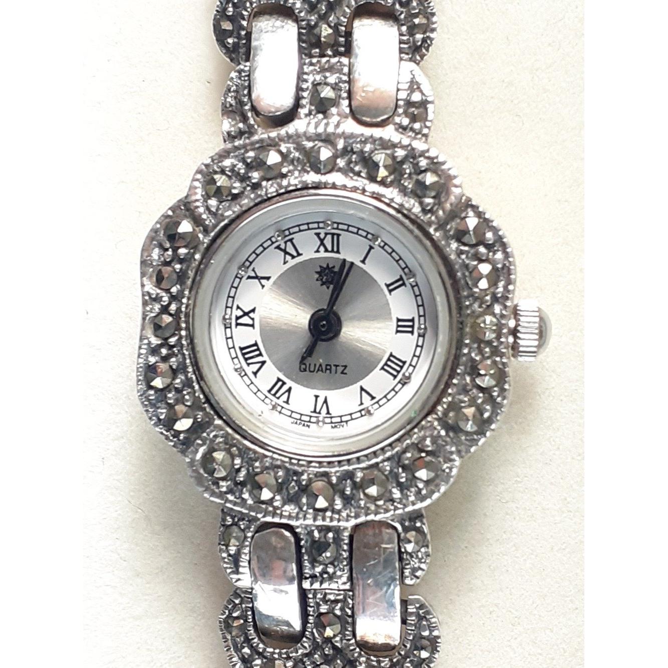 A ladies quartz cocktail watch with Japanese movement in marcasite bracelet with silver hallmarked clasp.Approx 1 pieces
