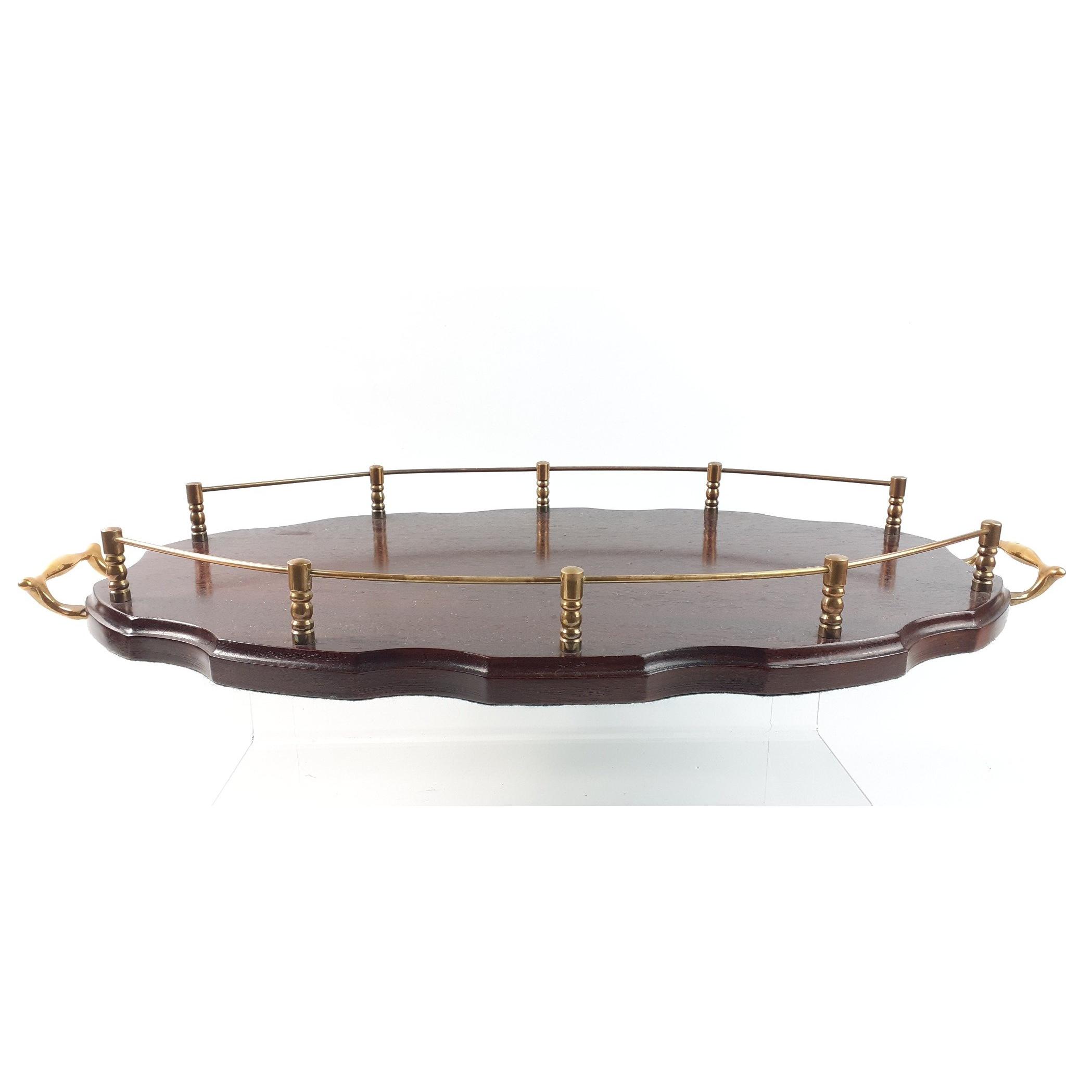 A wooden brass galleried tray with handles, length 54cm approx. In good condition.Approx 1 pieces