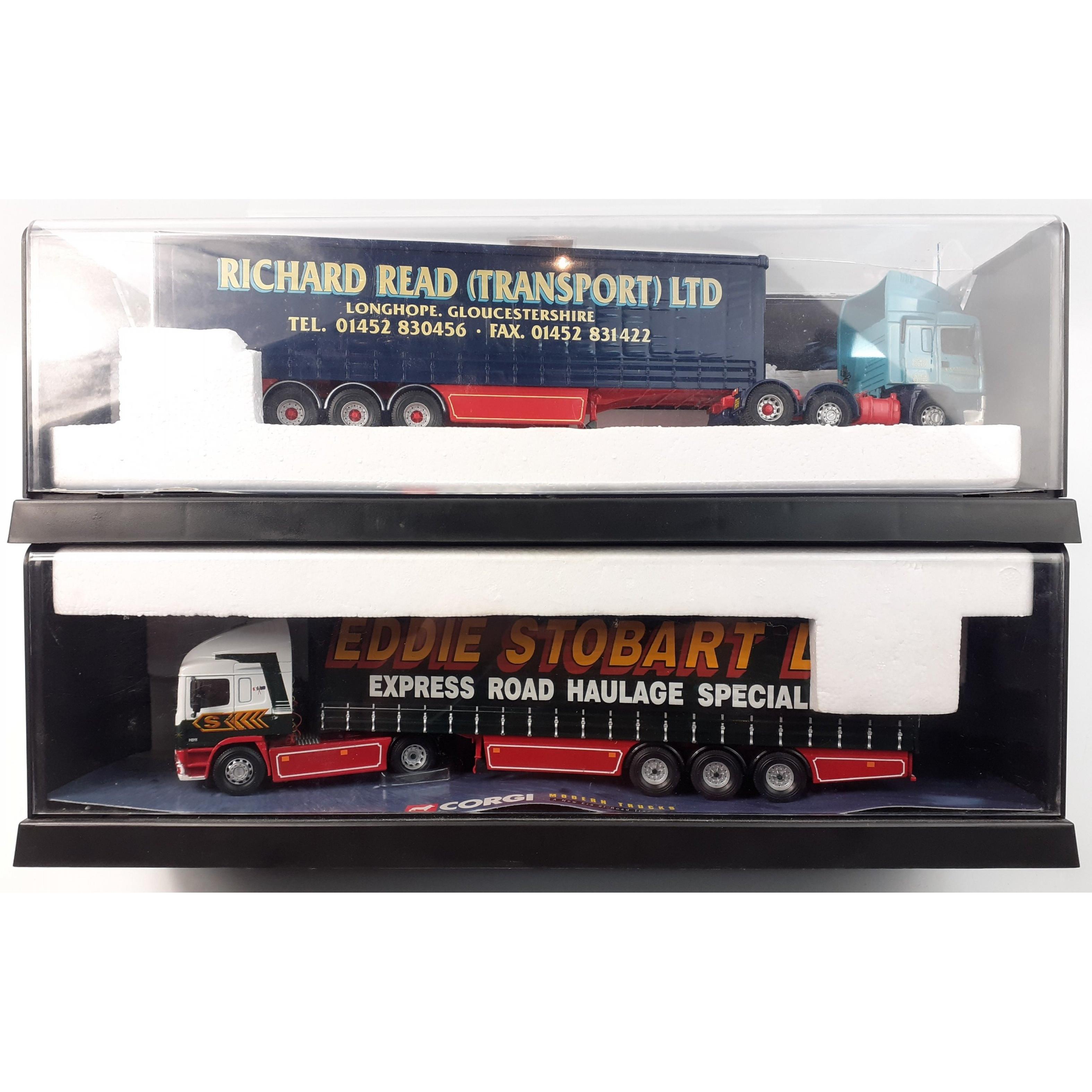 A CORGI Modern Trucks 75201 Eddie Stobart ERF curtain side and also a 75203 Richard Read in Perspex presentation boxes with some light wear