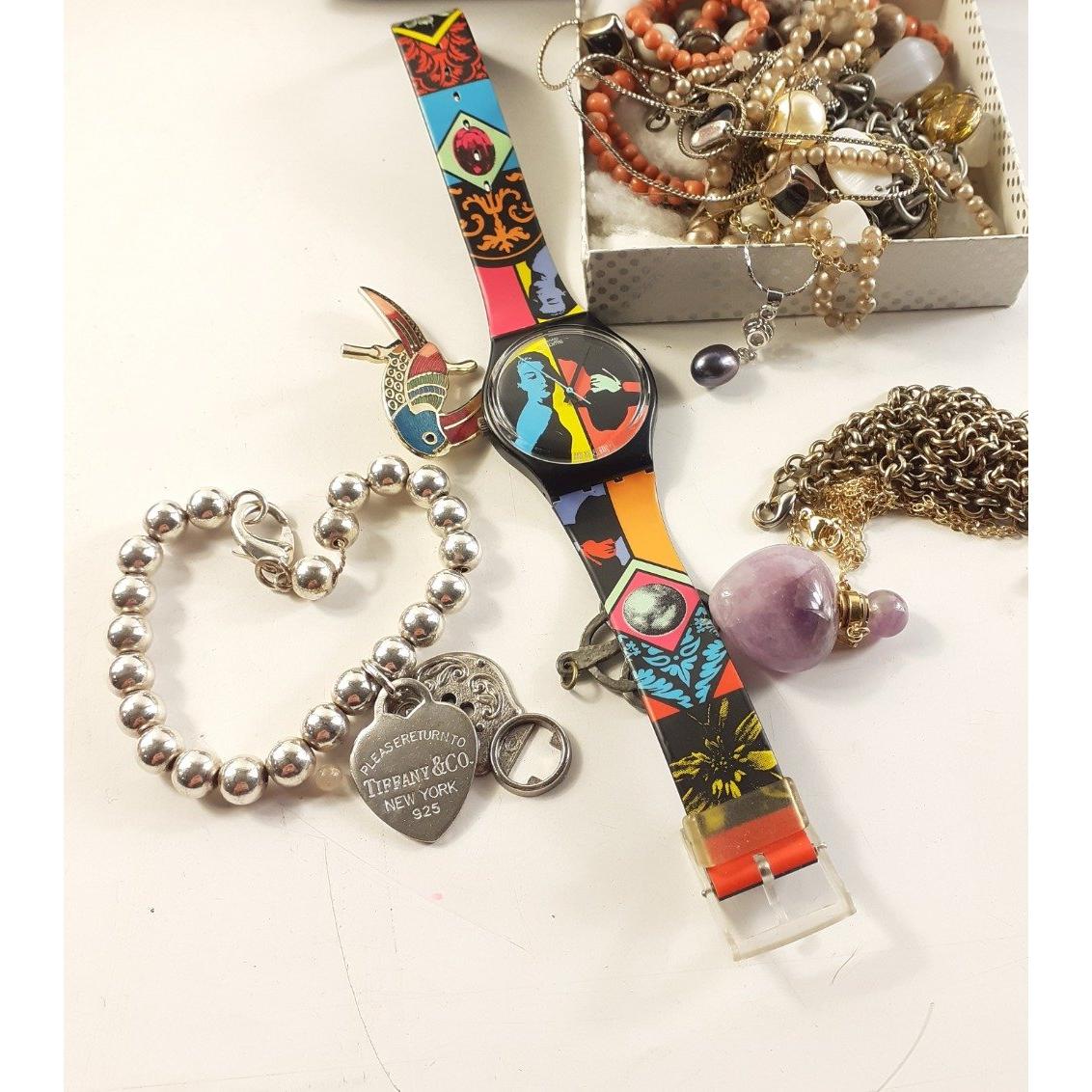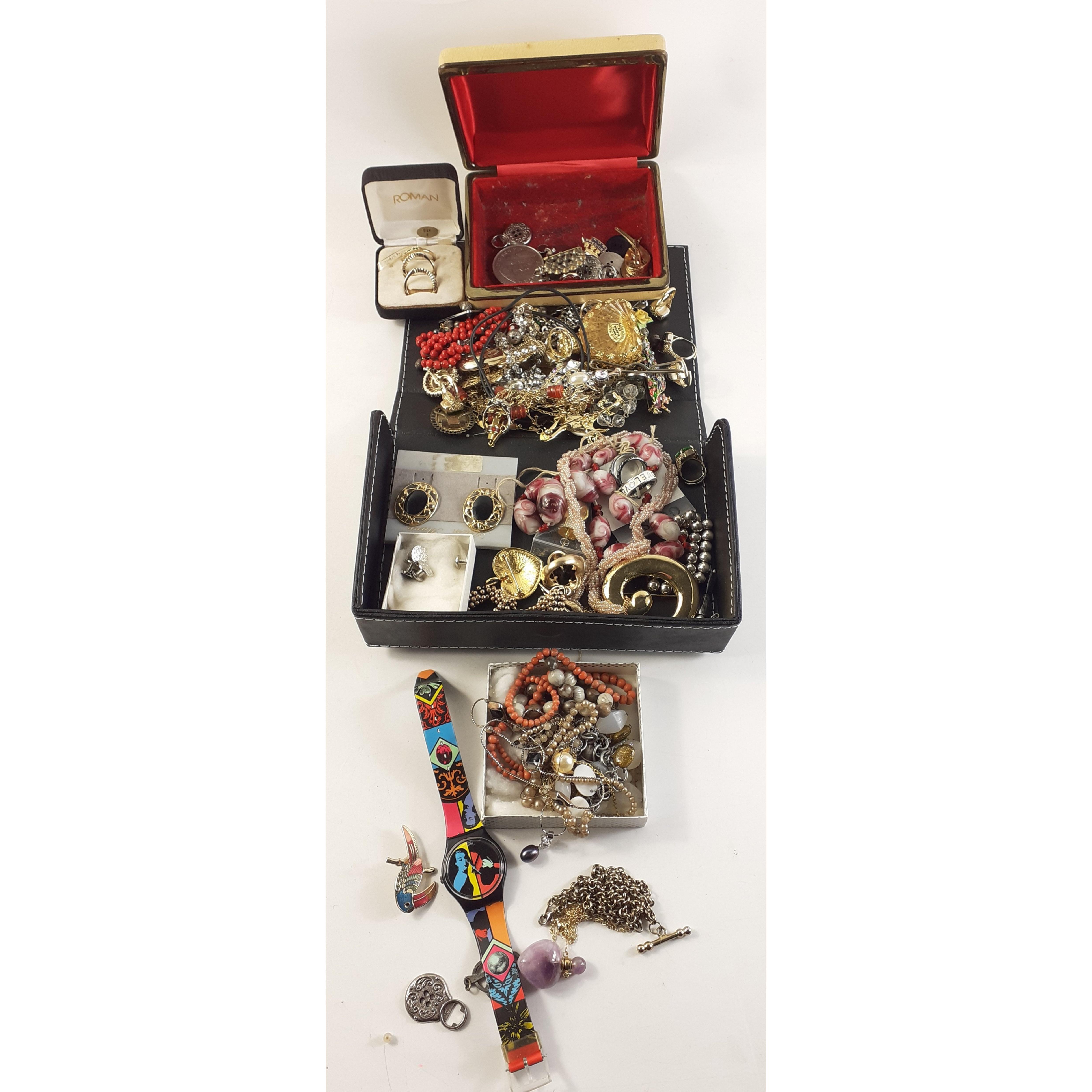 Three jewellery boxes with contents of a fine mix of costume jewellery including a vintage pop art SWATCH watchApprox 3 pieces