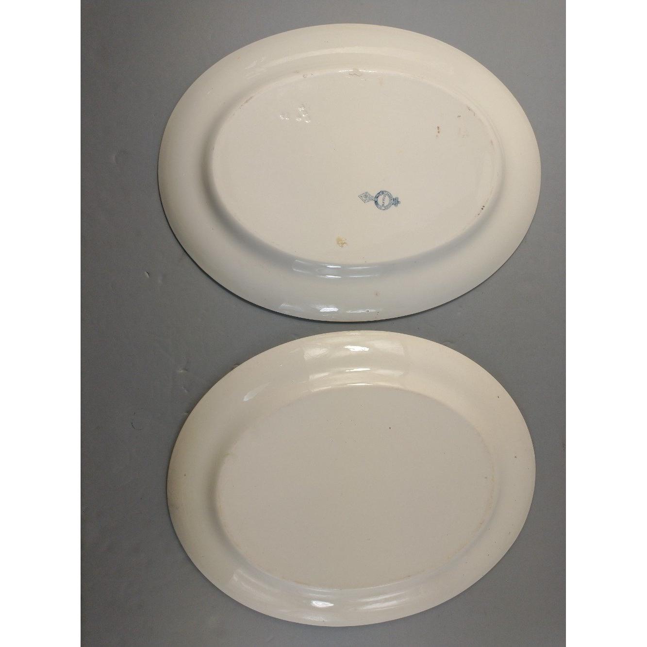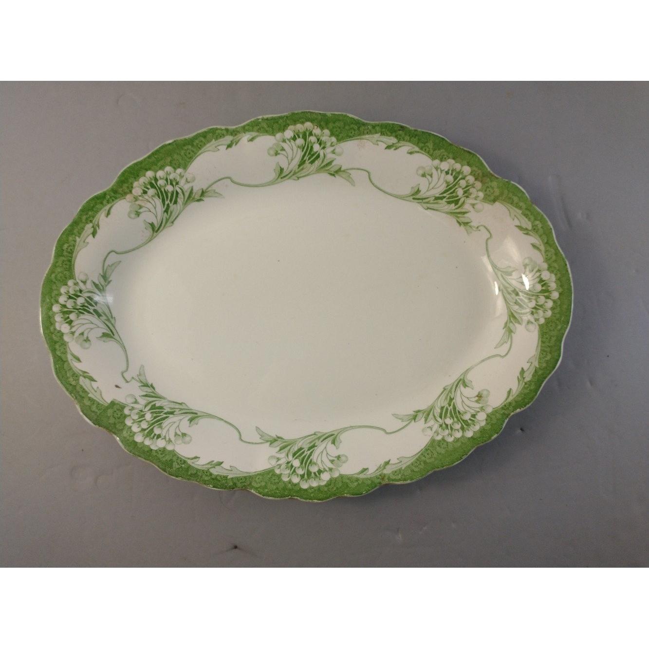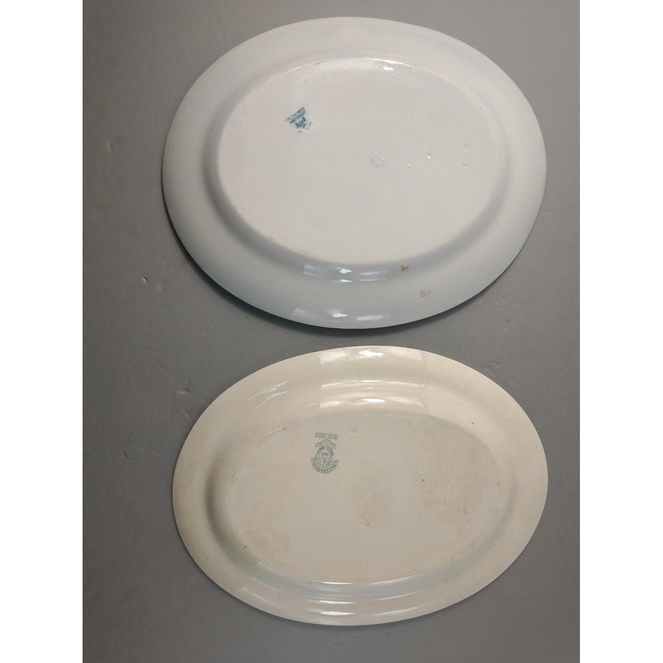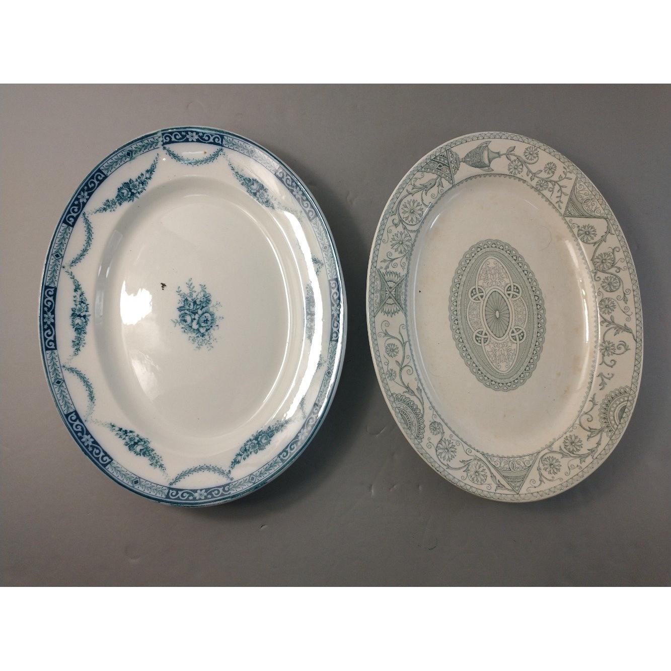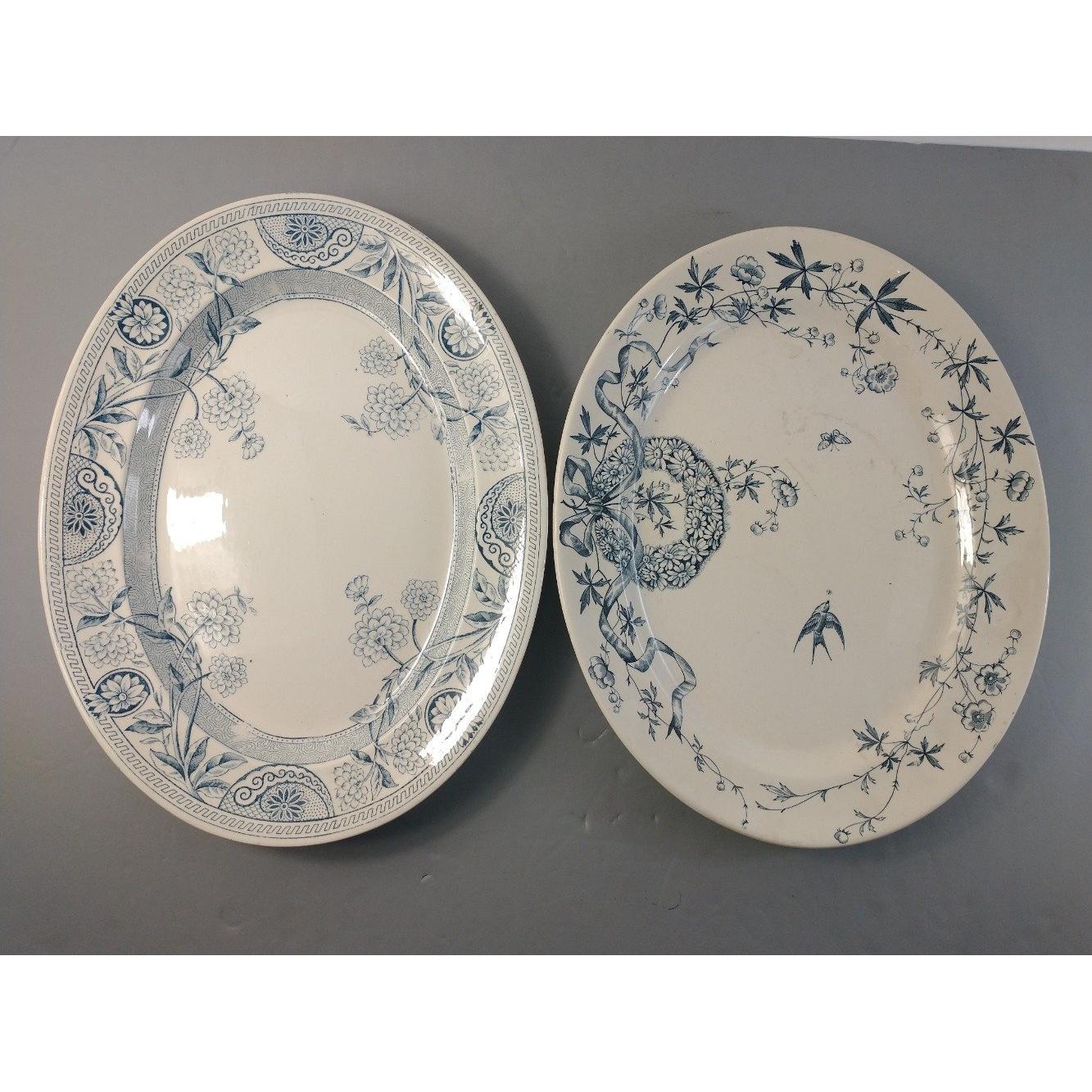 Five large platters to include a 42cm Victorian Sandringham with lozenge mark, a similar sized with swallow and butterfly design, and ELTON & CO green and white, a BLYTHSWOOD and one other