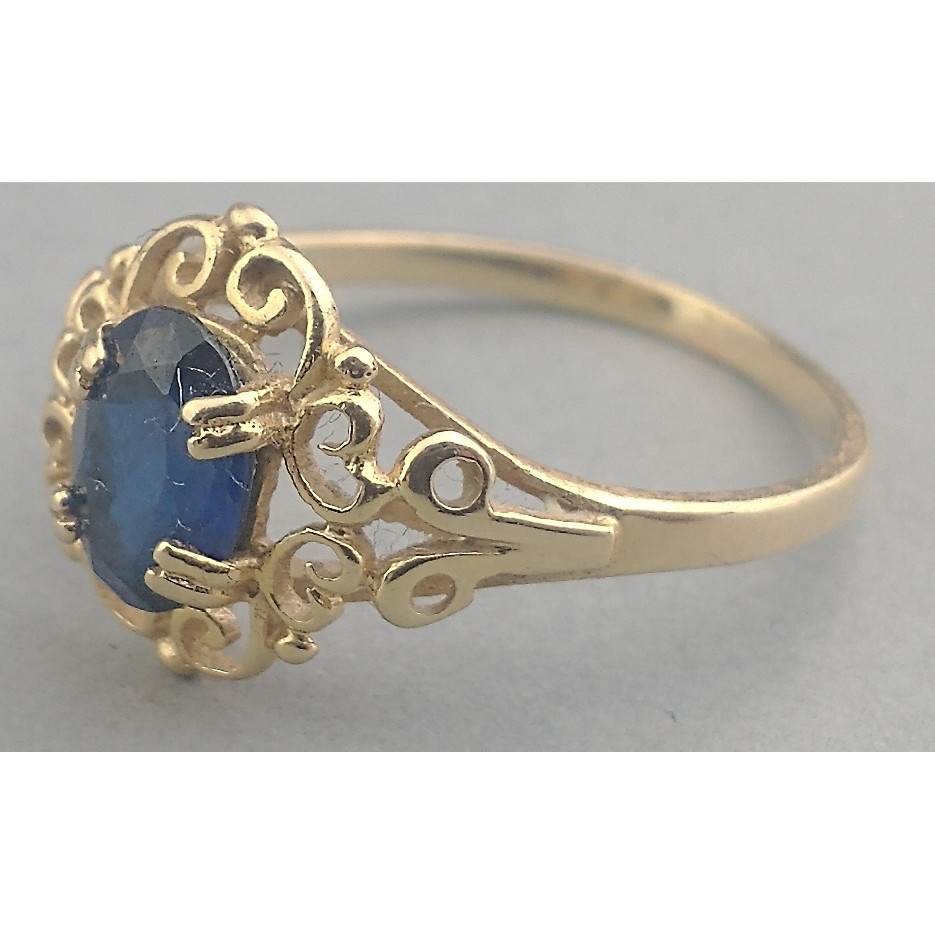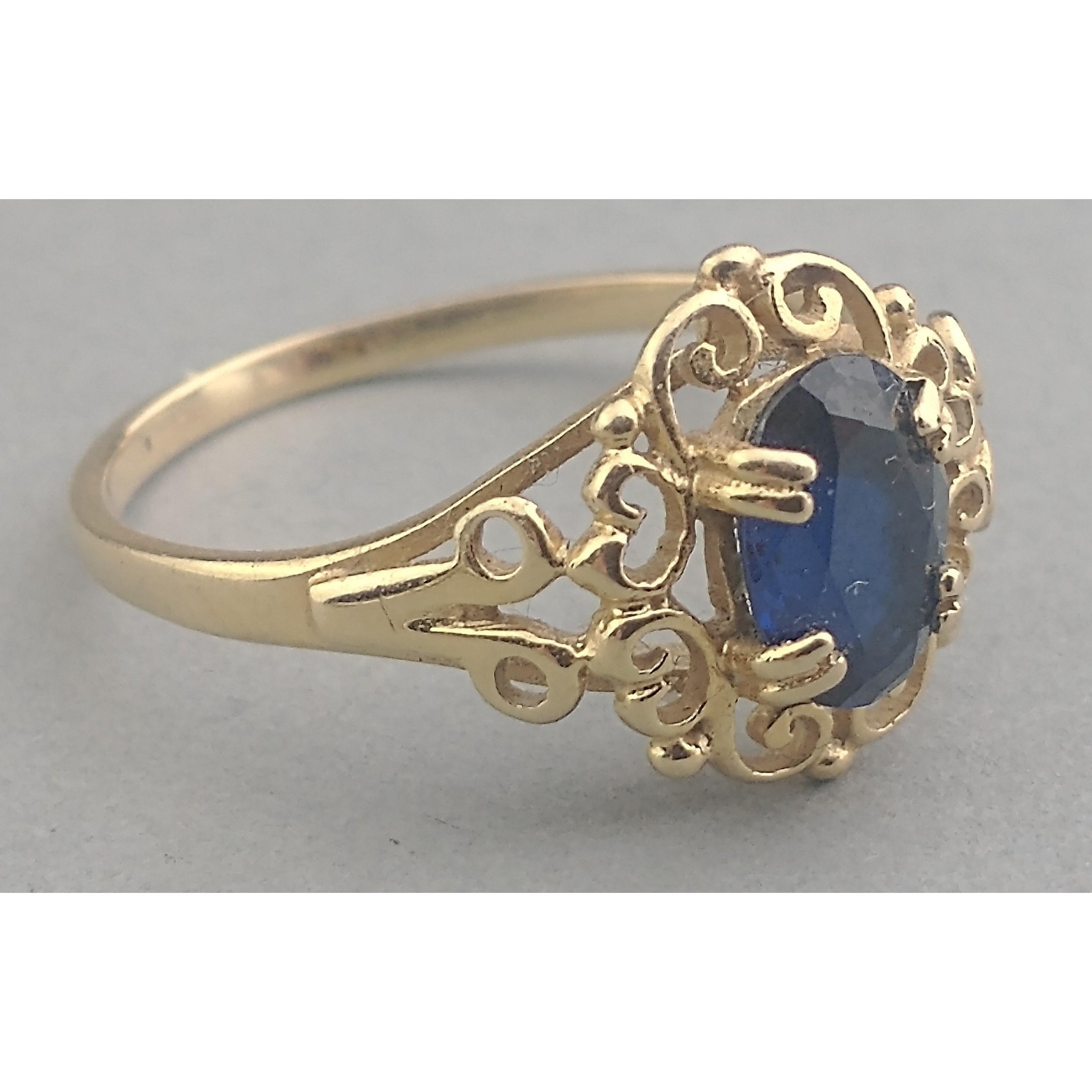 A lovely 14K 585 stamped ring with pretty blue centre stone. Size K, gross weight 1.6g approx. In a heart shaped box.