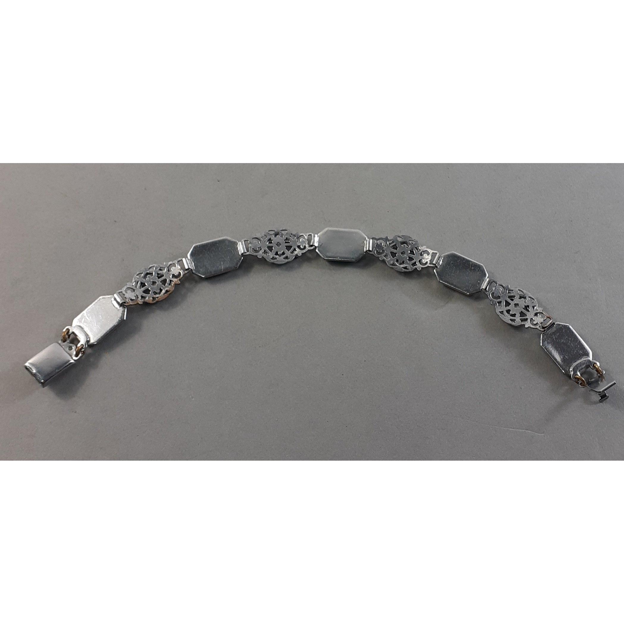 An unmarked intricate white metal jade-like bracelet, 17cm long approxApprox 1 pieces