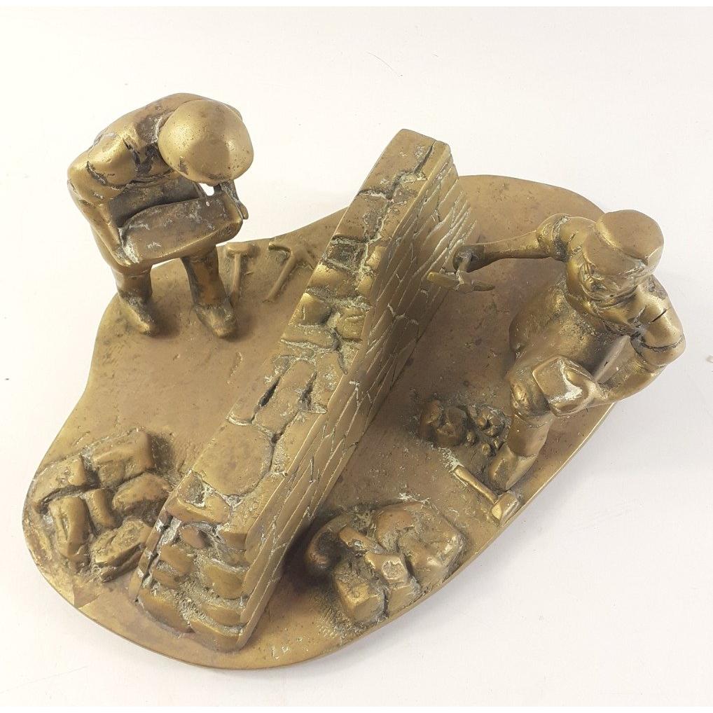 A brass figurine of two men building a drystane dyke. Base measures approx 30cm. One figure slightly loose.
