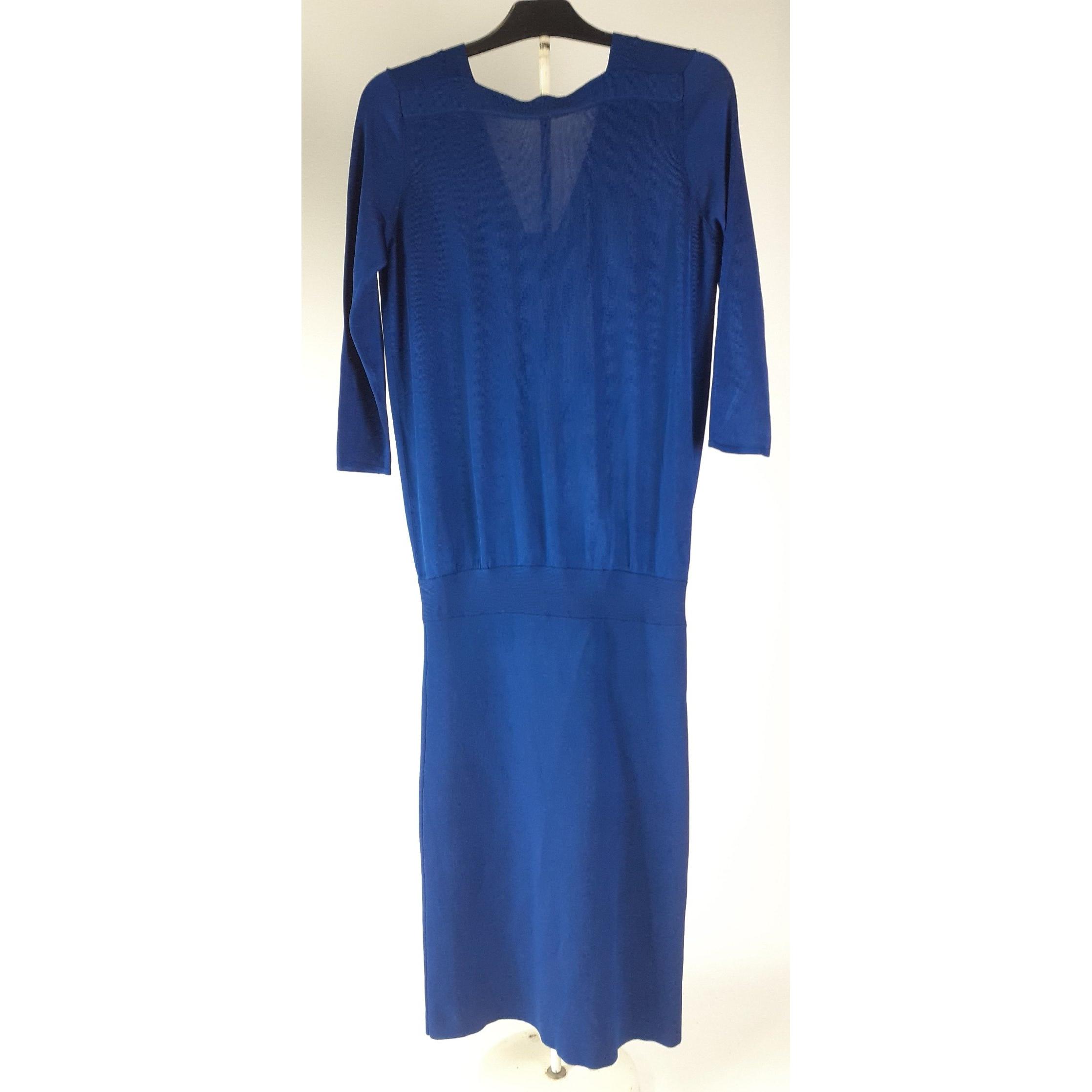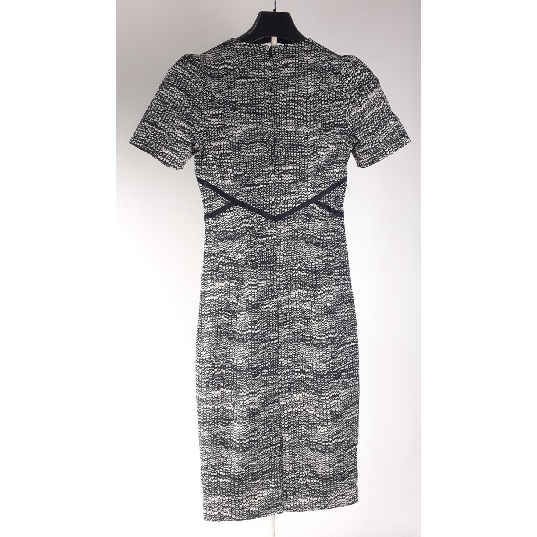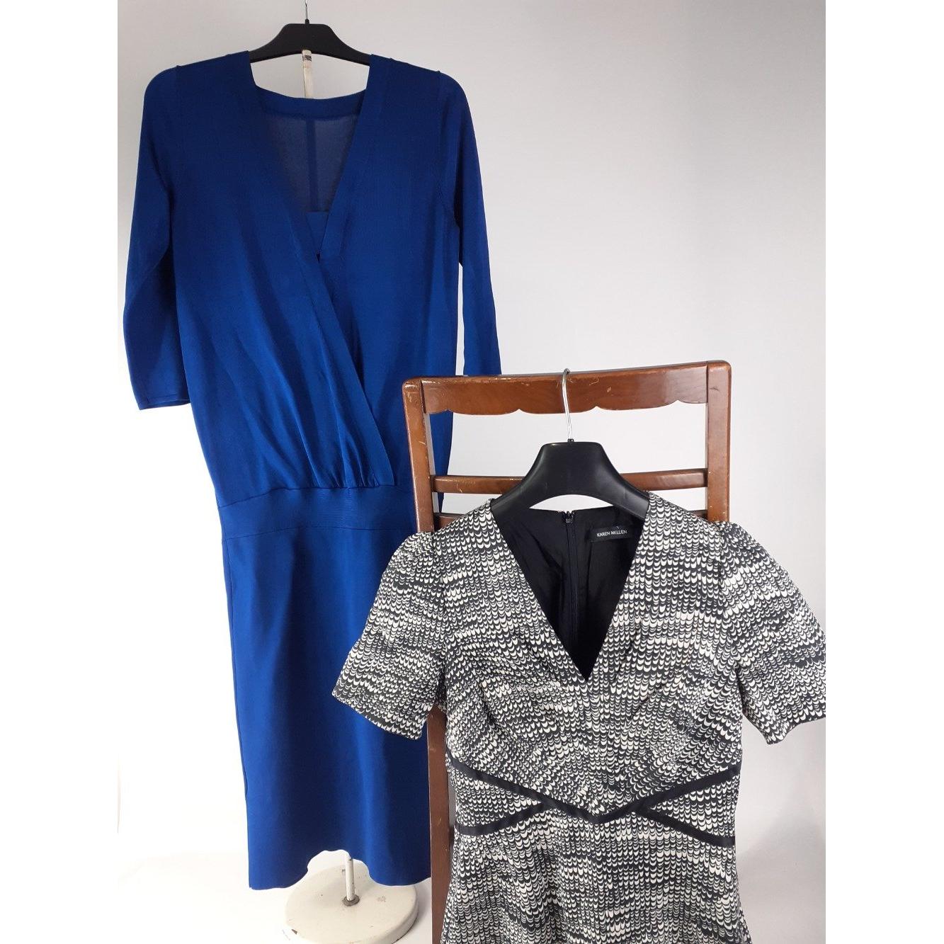 A black and white fully lined dress by KAREN MILLEN, size 10 and a knitted REISS dress in blue with a dropped waist also size 10, Approx 2 pieces