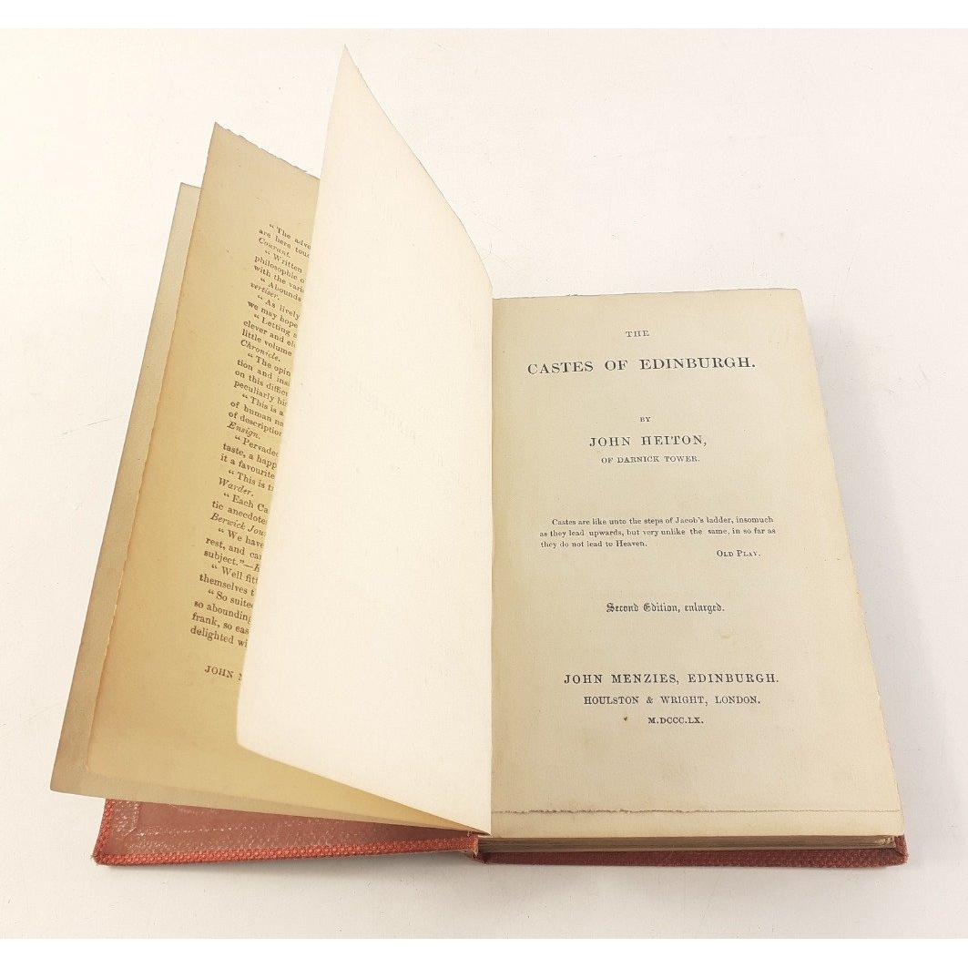 THE CASTES OF EDINBURGH of by John Heiton, 2nd edition, published by John Menzies 1860. Gilt stamped hardback copy. Fair conditionApprox 1 pieces